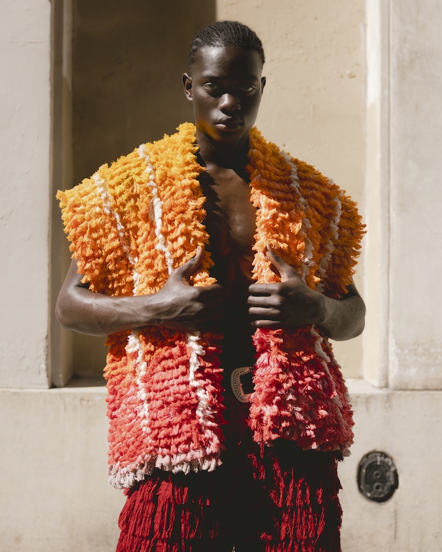 A KALTBLUT exclusive. Photography by Andrea Echeverría. The model is Moussa Ndiaye, signed at Dream Model Agency. Styling by Stephen Barrington STUDIOCRTL. Creative direction and production by N’chira. Fashion brands are Claudel, Yugen, Zara, Benjamin Robin, Asos, and Lumea Tribe.
