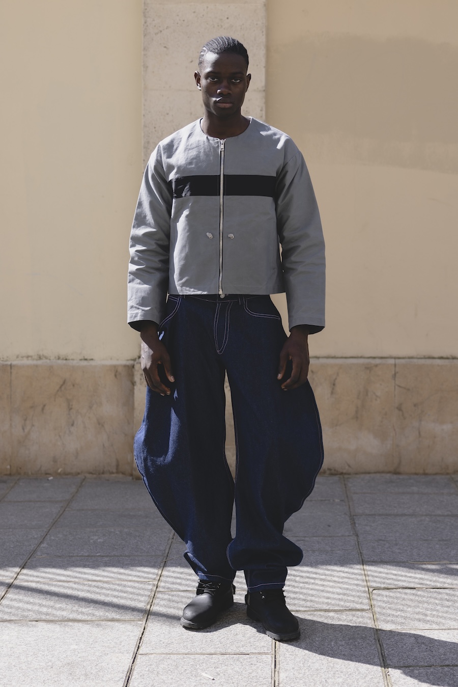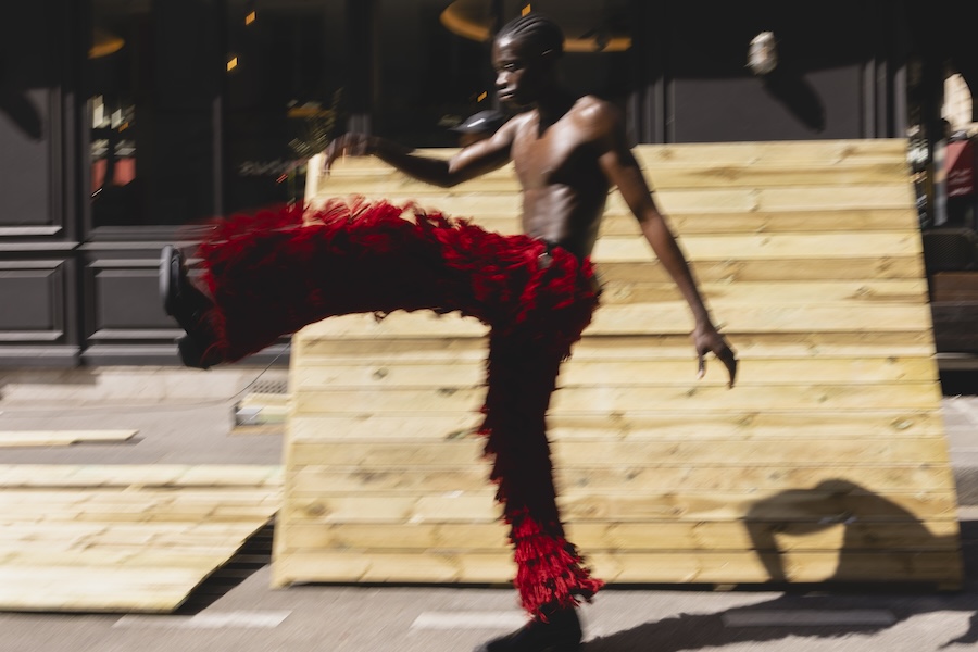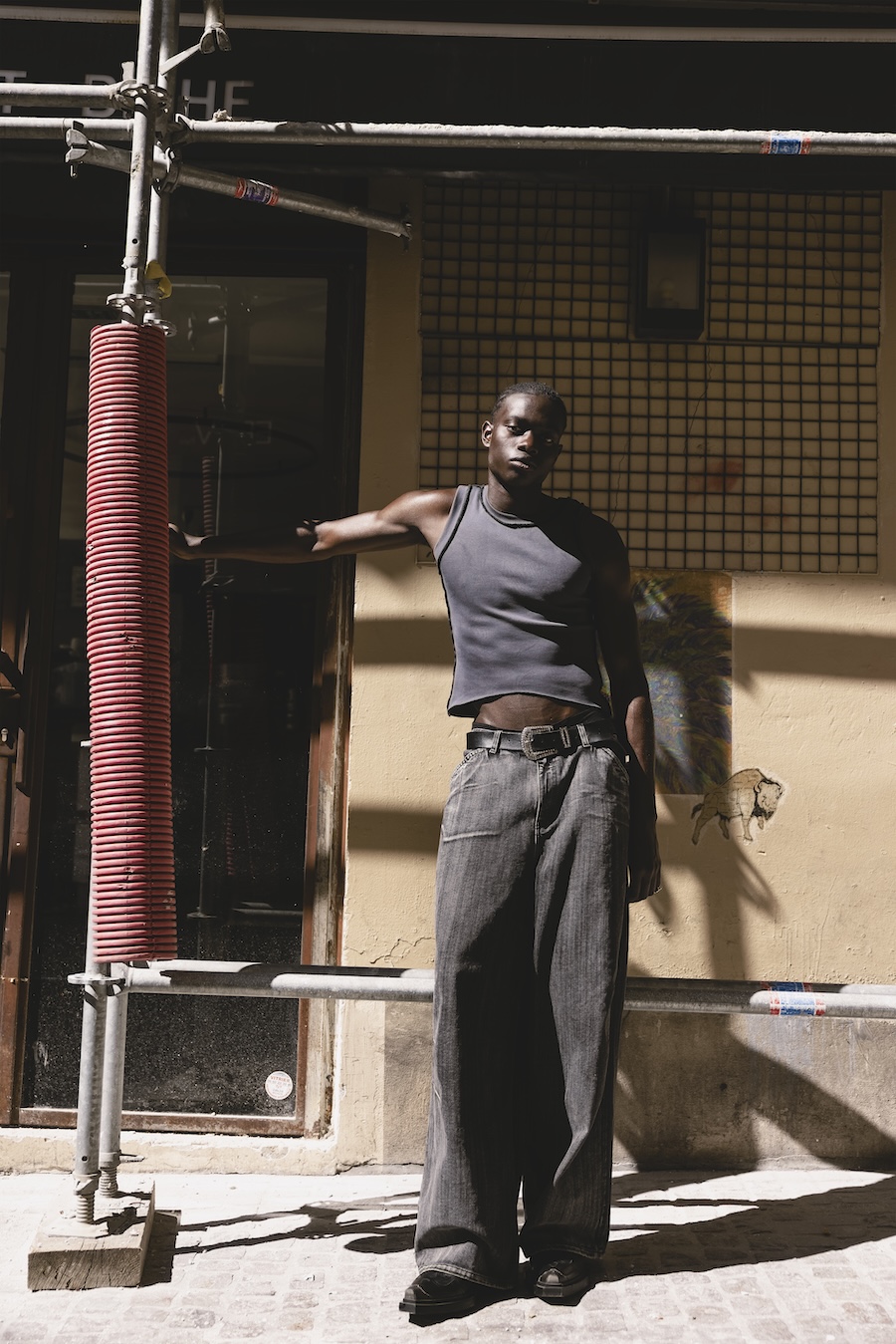 A KALTBLUT exclusive. Photography by Andrea Echeverría. The model is Moussa Ndiaye, signed at Dream Model Agency. Styling by Stephen Barrington STUDIOCRTL. Creative direction and production by N’chira. Fashion brands are Claudel, Yugen, Zara, Benjamin Robin, Asos, and Lumea Tribe.