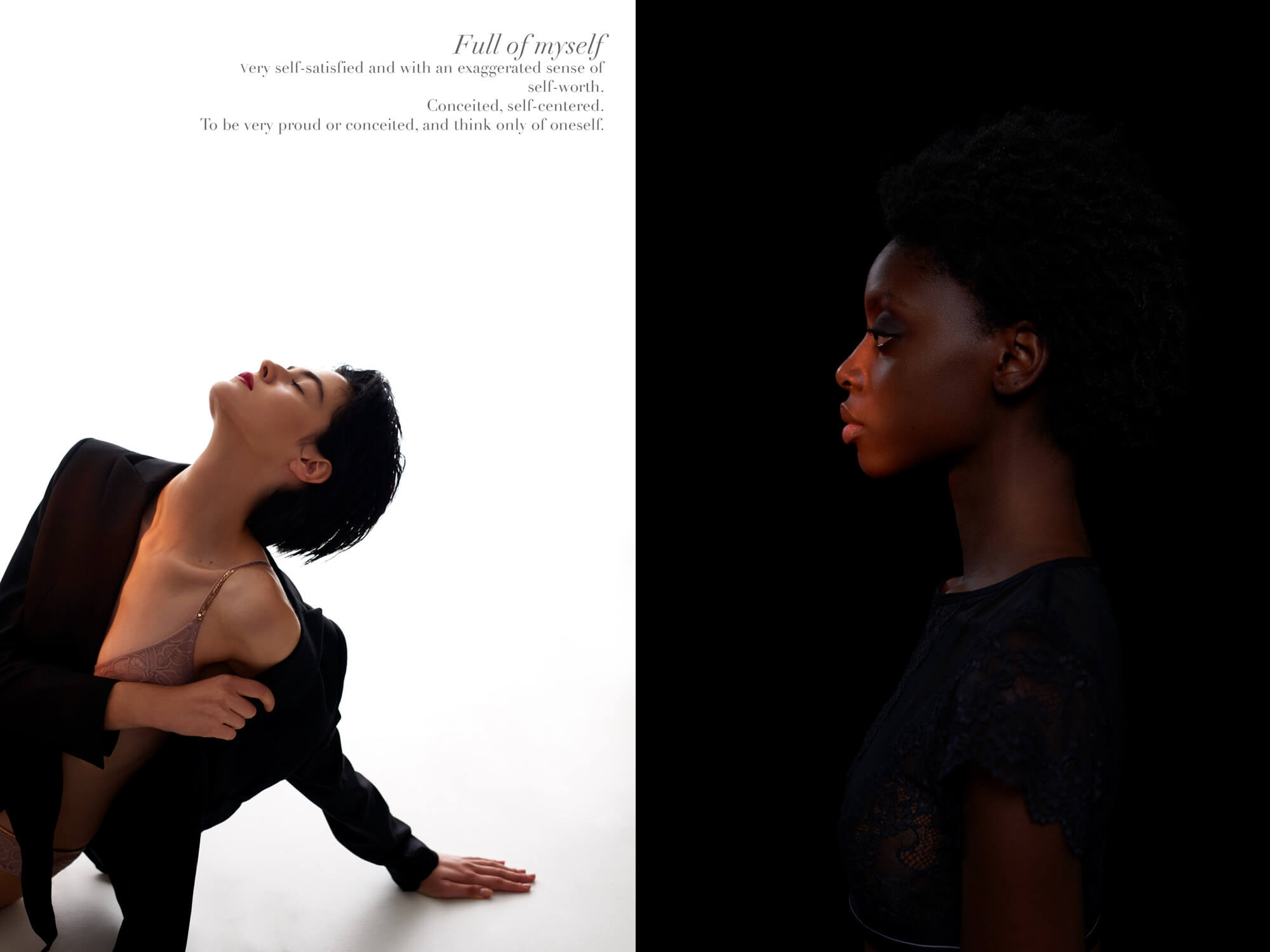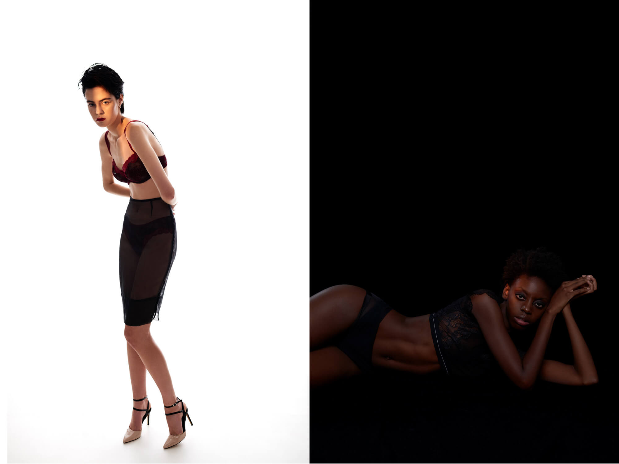 A KALTBLUT exclusive from Madrid. Photography by Soraya & Rodrigo. Styling Nacho Piñel. Models are Adji N and Natalia Napieralska. Makeup by Nao Gayoso (NS Management) for Givenchy y L’Oréal Professional. Brands are Andrés Sardá, Antik Batik, Calvin Klein Underwear, Dim, ERES, Guess Underwear, Laia Alen, Laura Bernal, Lola Casademunt, Playtex, SamPedro Accessories, The Kooples.