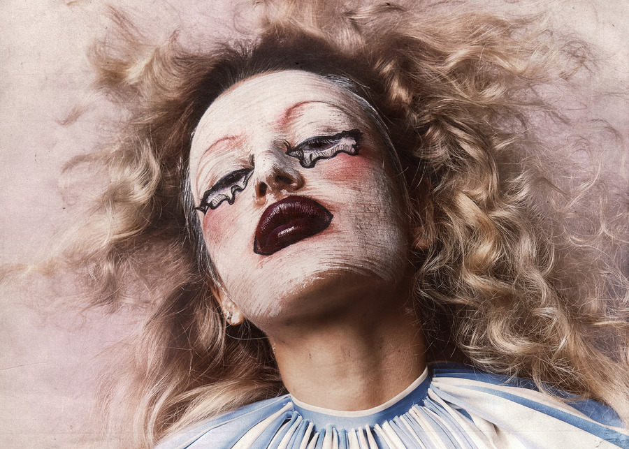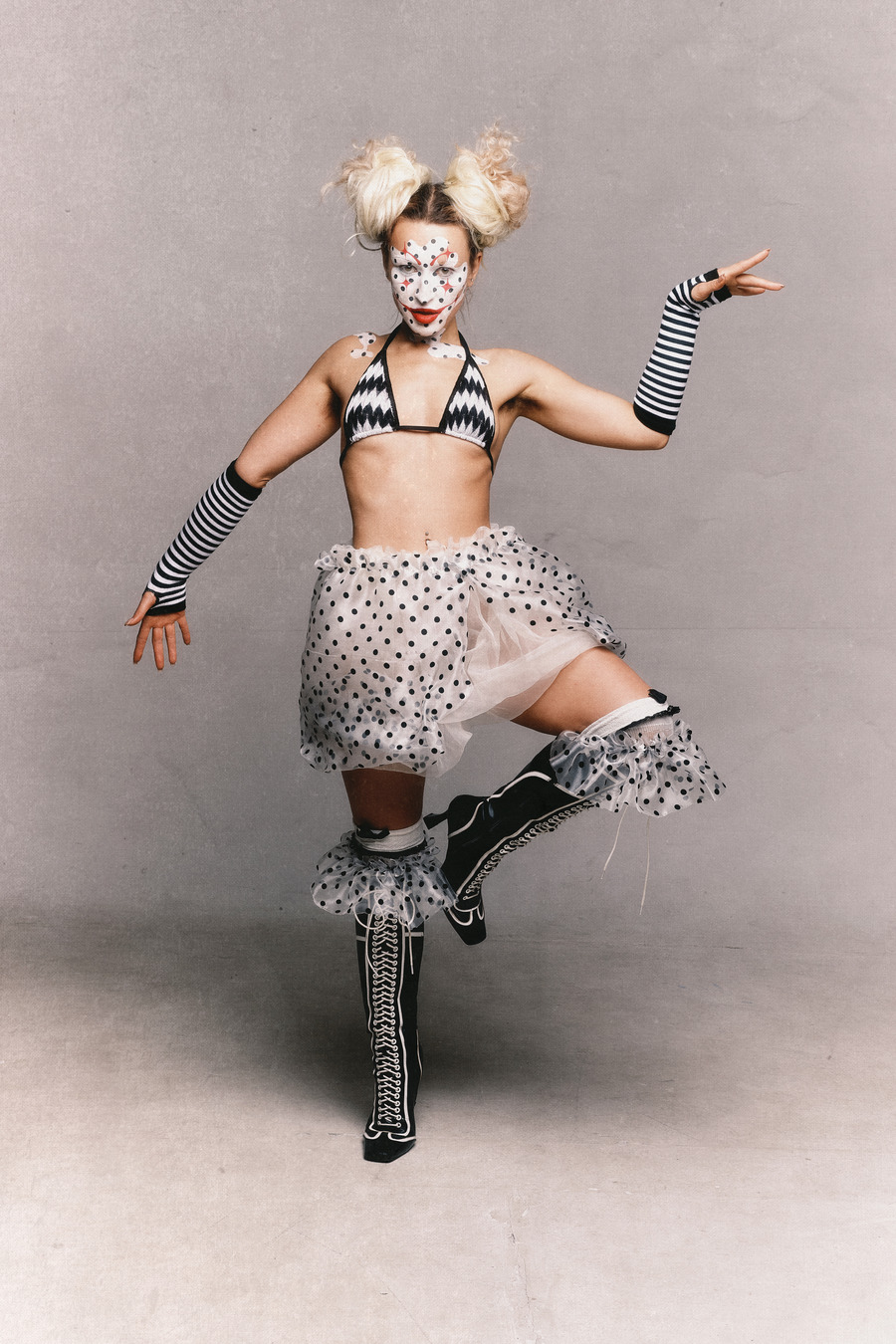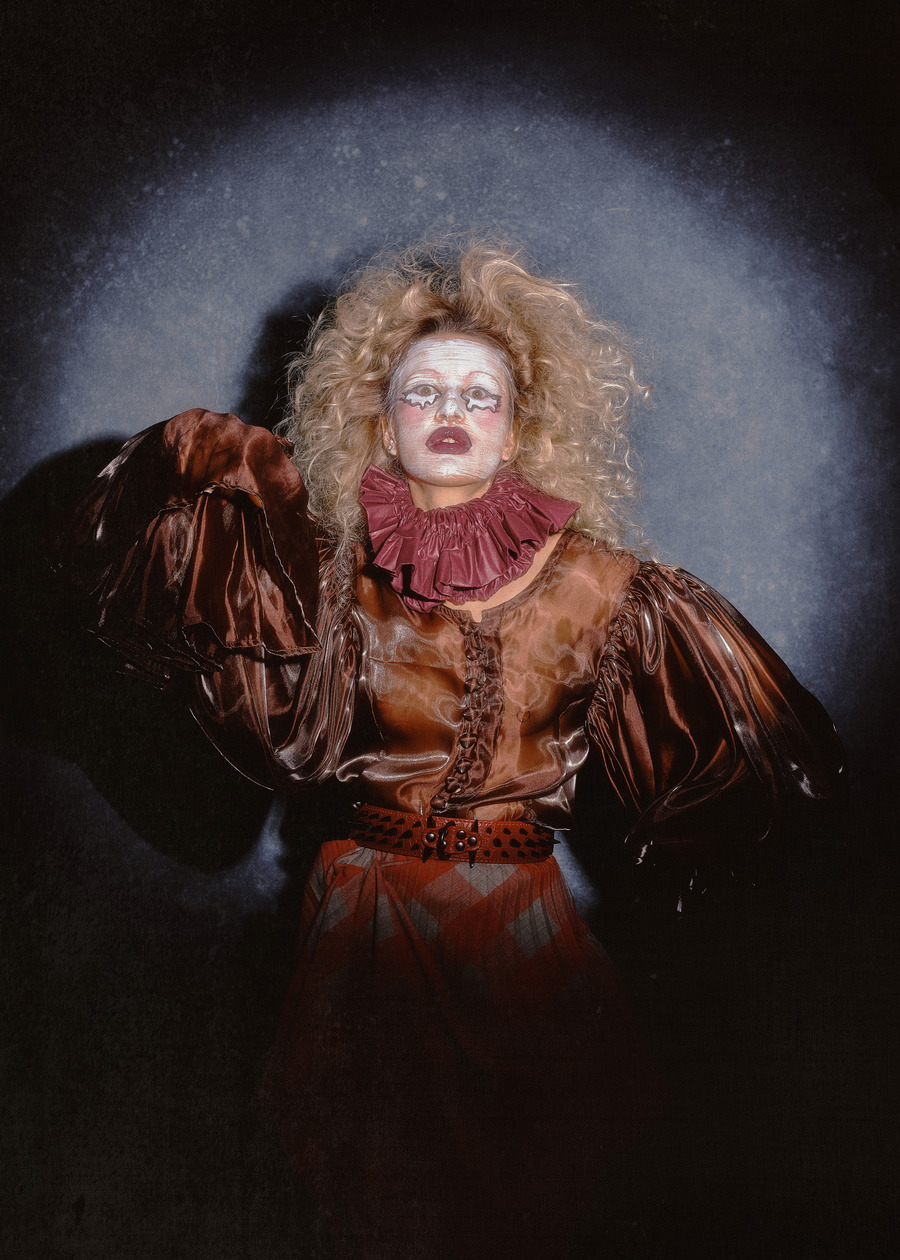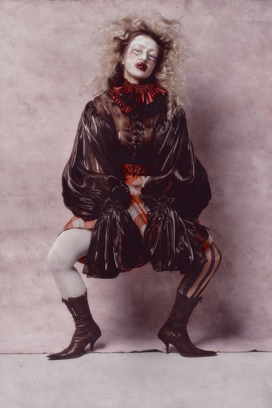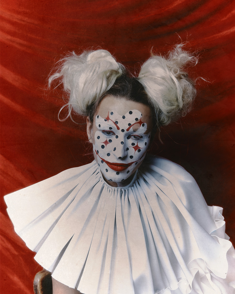 “Funhouse” delves into the multifaceted world of clowning, capturing its joyful exuberance, underlying melancholy, and eerie undertones. This editorial juxtaposes the vibrant and the sombre, the whimsical and the unsettling, through a series of fashion looks inspired by the iconic vintage imagery of clowns. The scene enhances the surreal and nostalgic atmosphere, blending elements of decay and wonder.