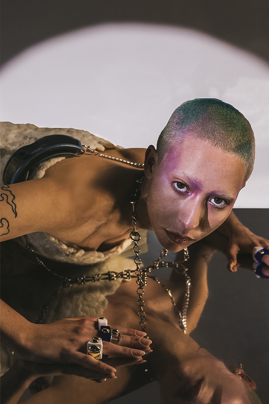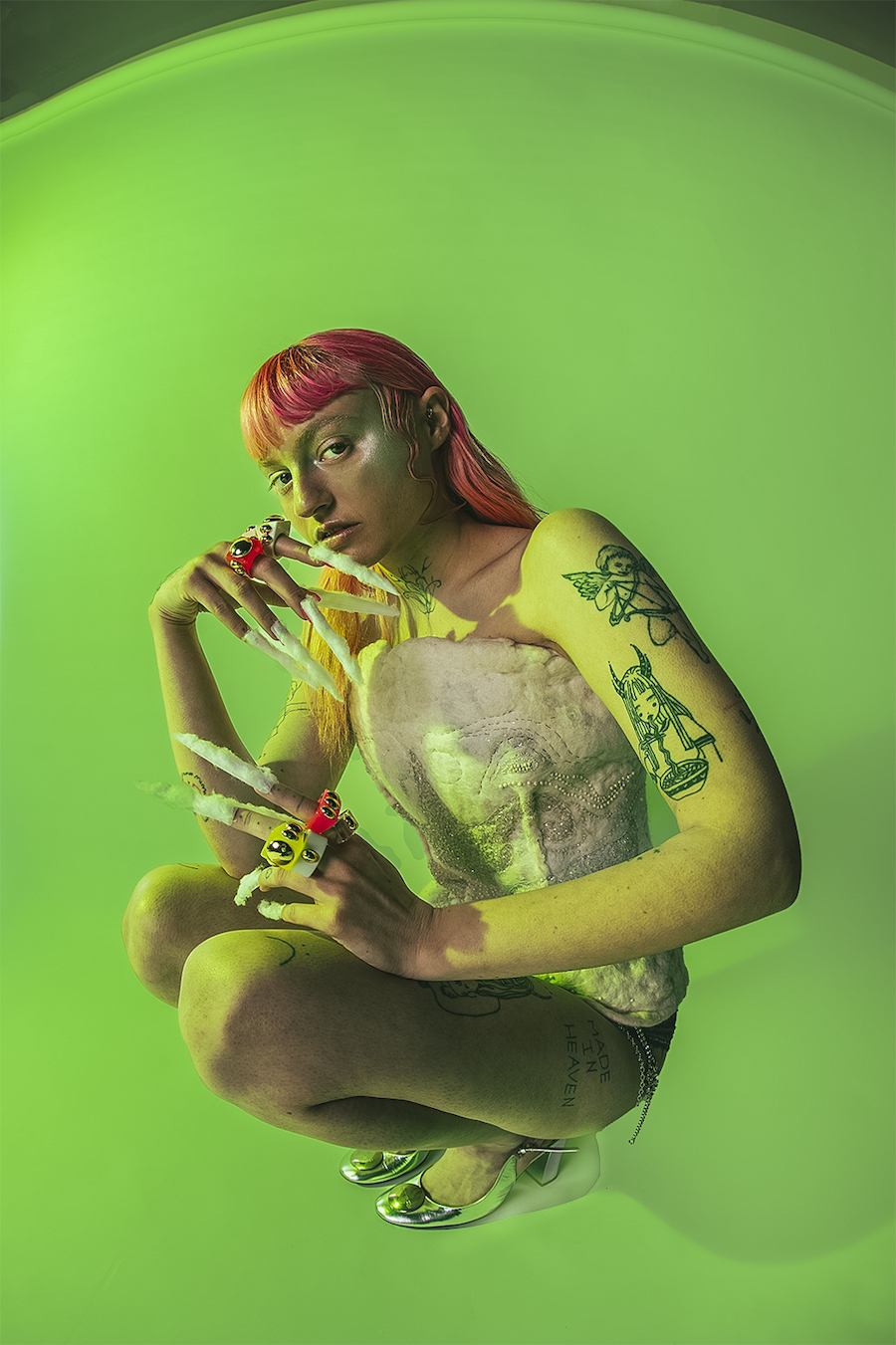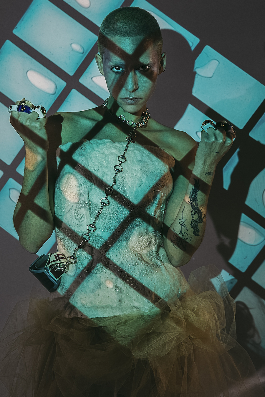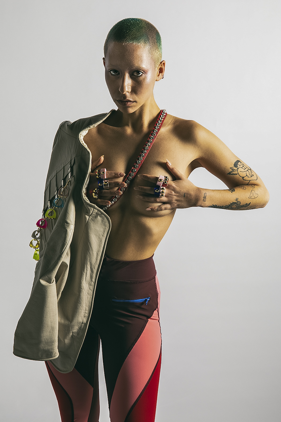 A KALTBLUT exclusive from Tel Aviv, Israel. “We had a very clear vision of the aesthetics of the photo shoot, which led to a harmonically work together on set and beforehand. The work together as a strong feminine group on set resulted in an energetic and precise outcome. Our team includes 5 women artists: Michaela Elkin (designer of Jimmini and stylist) Emmanuela Hill (model, musician, Hyper pop artist and visual artist), Talia Lipshut (model and content writer from draft agency), Marina Eskenazi (hair and makeup) & I (photographer).” says Danielle Sinai Shvadron.