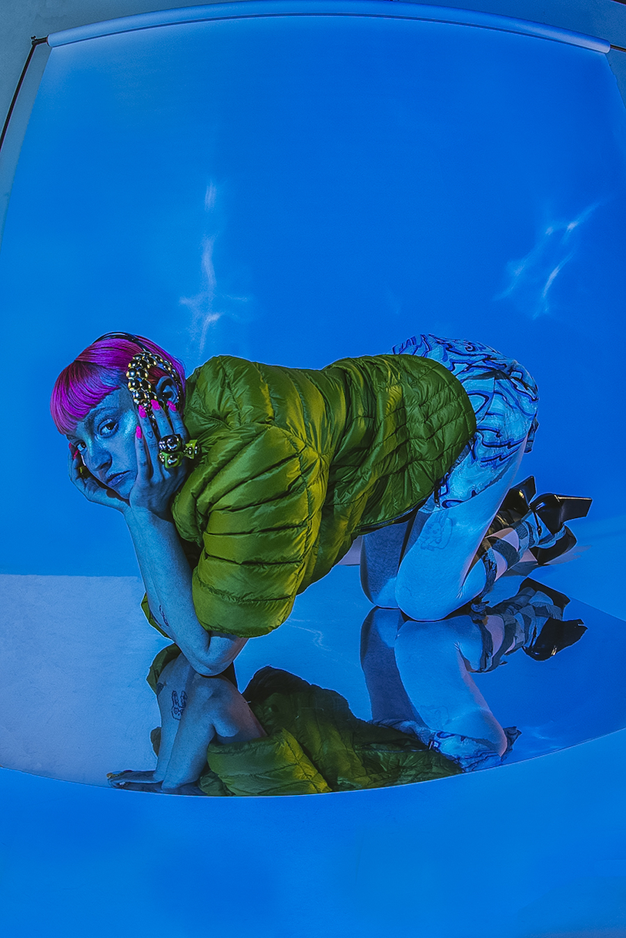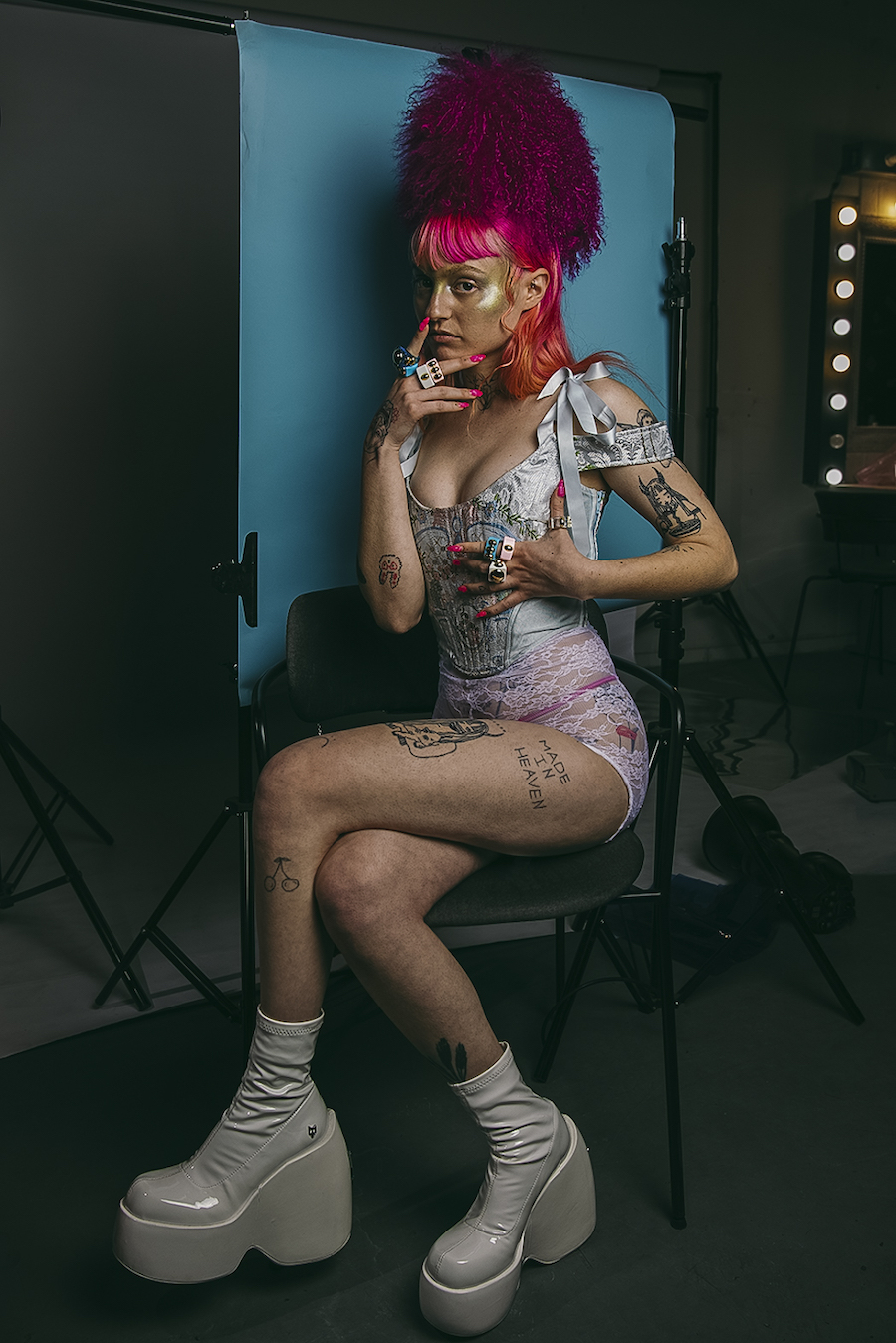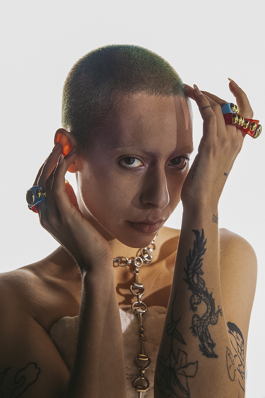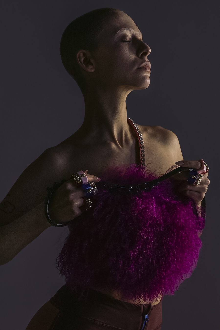 A KALTBLUT exclusive from Tel Aviv, Israel. “We had a very clear vision of the aesthetics of the photo shoot, which led to a harmonically work together on set and beforehand. The work together as a strong feminine group on set resulted in an energetic and precise outcome. Our team includes 5 women artists: Michaela Elkin (designer of Jimmini and stylist) Emmanuela Hill (model, musician, Hyper pop artist and visual artist), Talia Lipshut (model and content writer from draft agency), Marina Eskenazi (hair and makeup) & I (photographer).” says Danielle Sinai Shvadron.