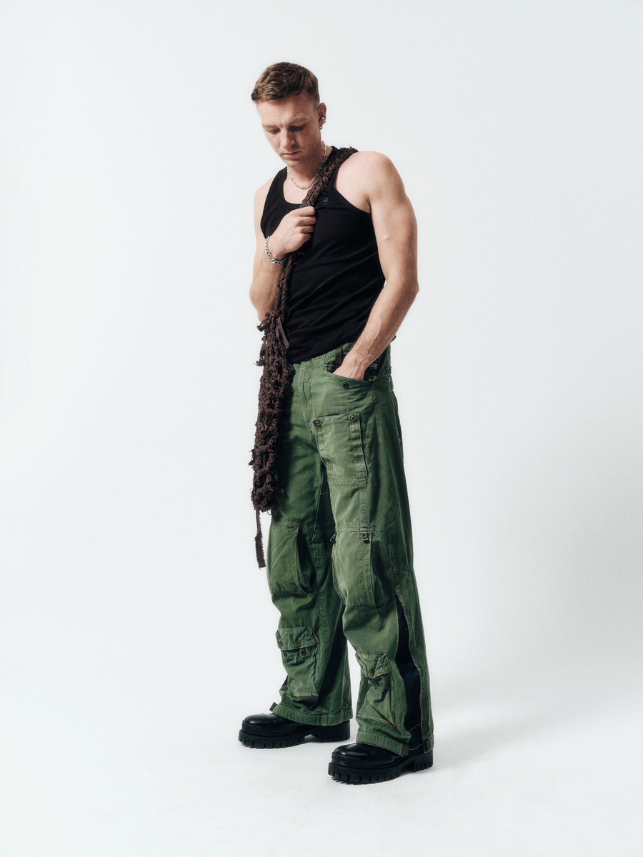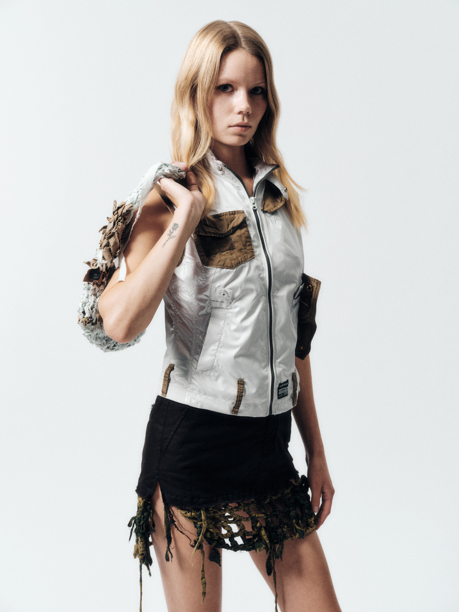 The capsule collection showcases (di)vision’s dedication to creating from existing materials, as they transform G-Star’s menswear and womenswear styles into a unisex collection of handmade, one-of-a-kind garments. Cropped jackets, cargo pants, denim jeans, tops, and a range of accessories are carefully crafted, merging the Y2K-era inspiration from G-Star with (di)vision’s contemporary design vision. This collaboration perfectly captures the essence of both brands, incorporating current styles, trends, and playful elements.