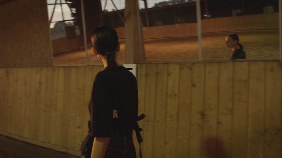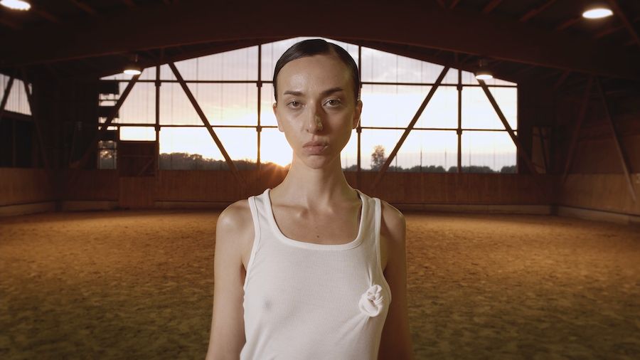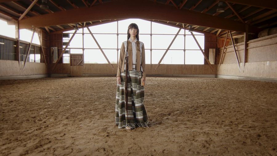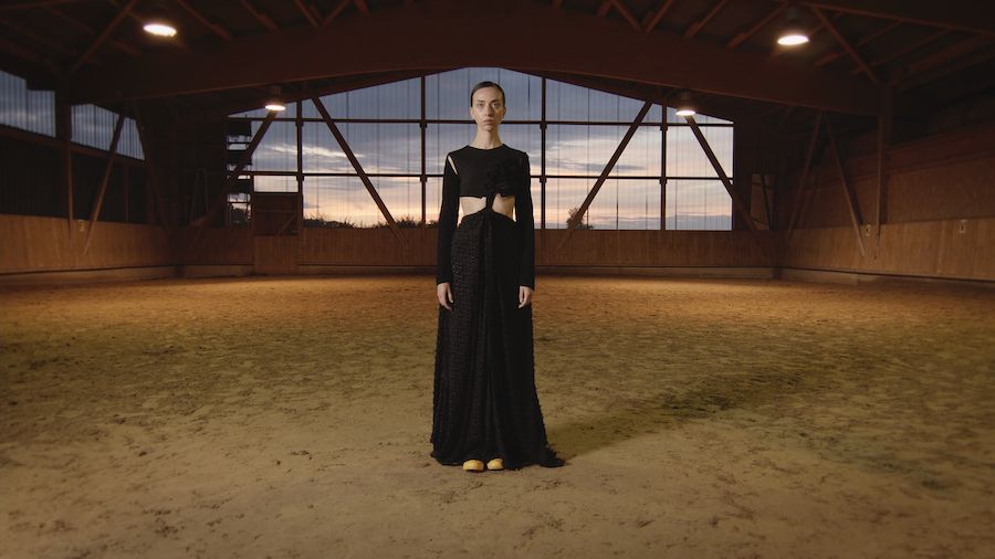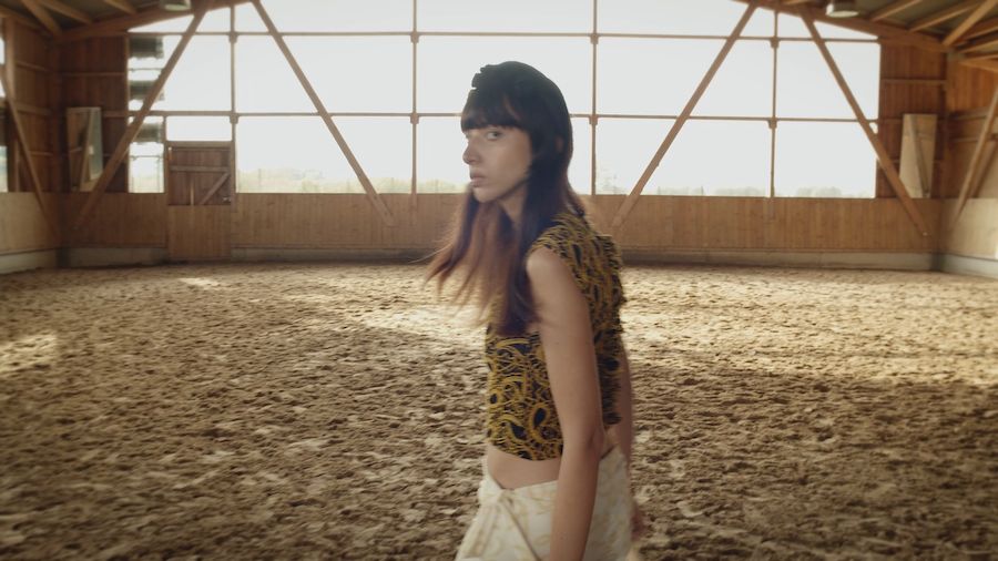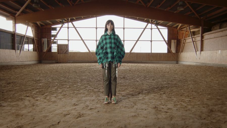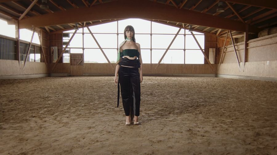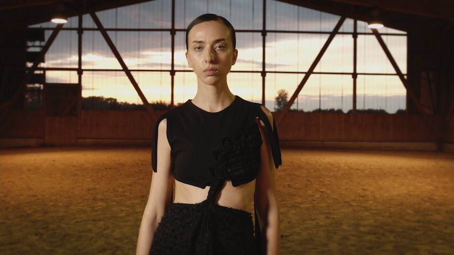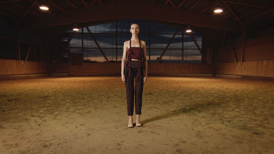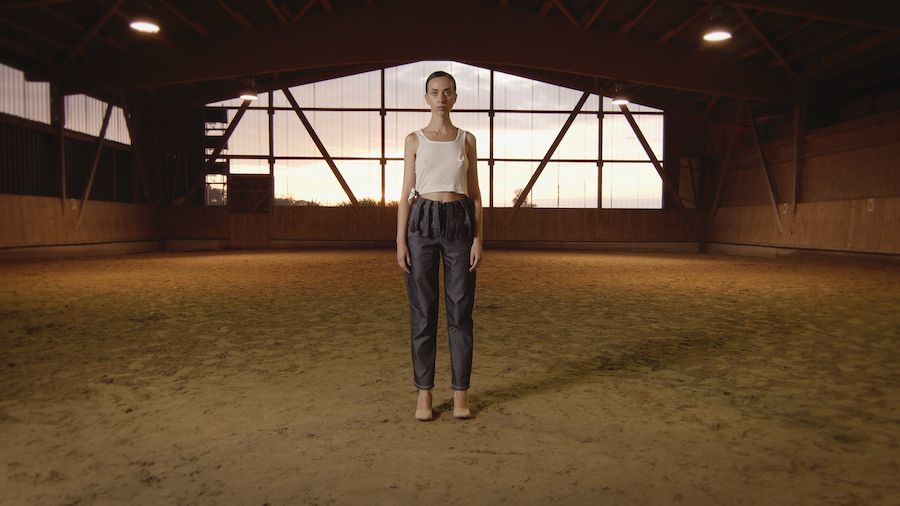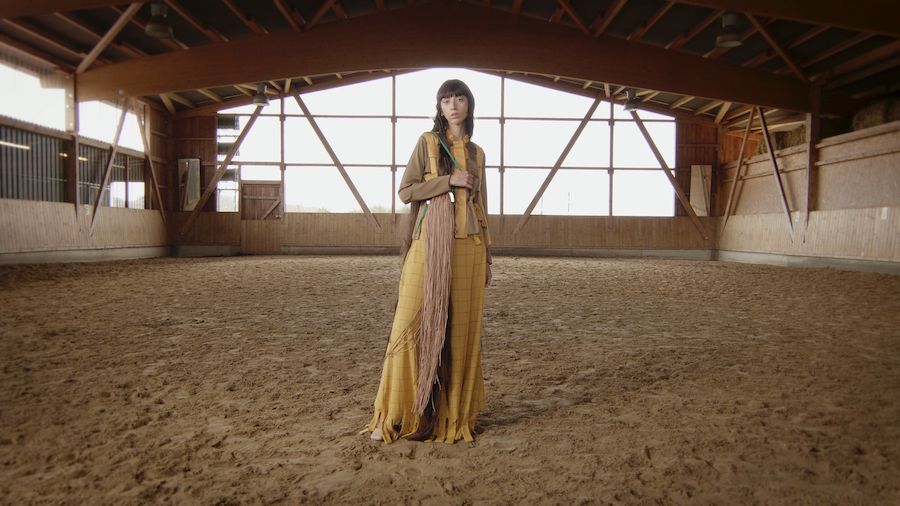 THE GB2022-CLUB ARTICULATES SETS OF ELEMENTS – COMBINED TOGETHER THROUGH BRAIDING TECHNIQUES. THEY PAY TRIBUTE TO THIS SPECIAL TIME OF GROOMING SPENT WITH THE HORSE BEFORE RIDING. TINY GENTLE GESTURES AND CARING DAILY RITUALS ARE HERE AT THE CENTER OF THE CREATIVE PROCESS. ATTACHED OR DETACHED, BRAIDED OR NOT, THE PIECES OSCILLATE BETWEEN RODEO FRINGES AND TIGHT EQUESTRIAN GEAR, AMAZON ONE BREAST TOP AND JOCKEY JACKET, PONY MOTTLED COAT AND STRETCHY VELVET. EACH DESIGN IS NAMED FROM A TYPICAL HORSE NAME INVITING YOU TO CARE FOR AND INTERACT WITH.