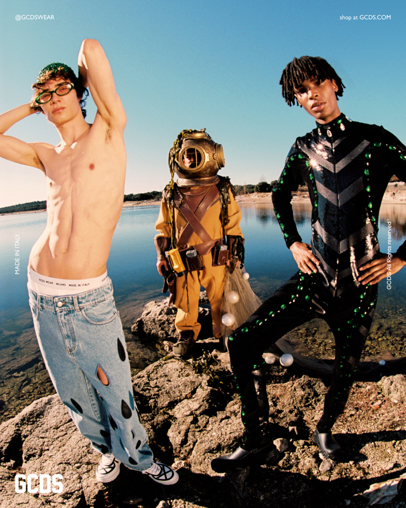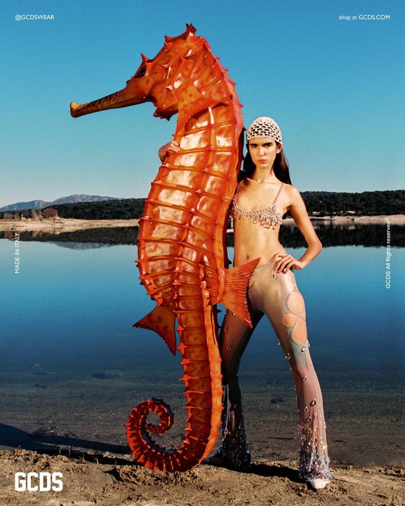 #Campaign – The mythological magic of the sea comes to the surface in an all-new campaign for GCDS S/S22. A high fashion fantasy mixes sun-drenched surrealism with the here and now, pushing toward a bright, beach-filled tomorrow.