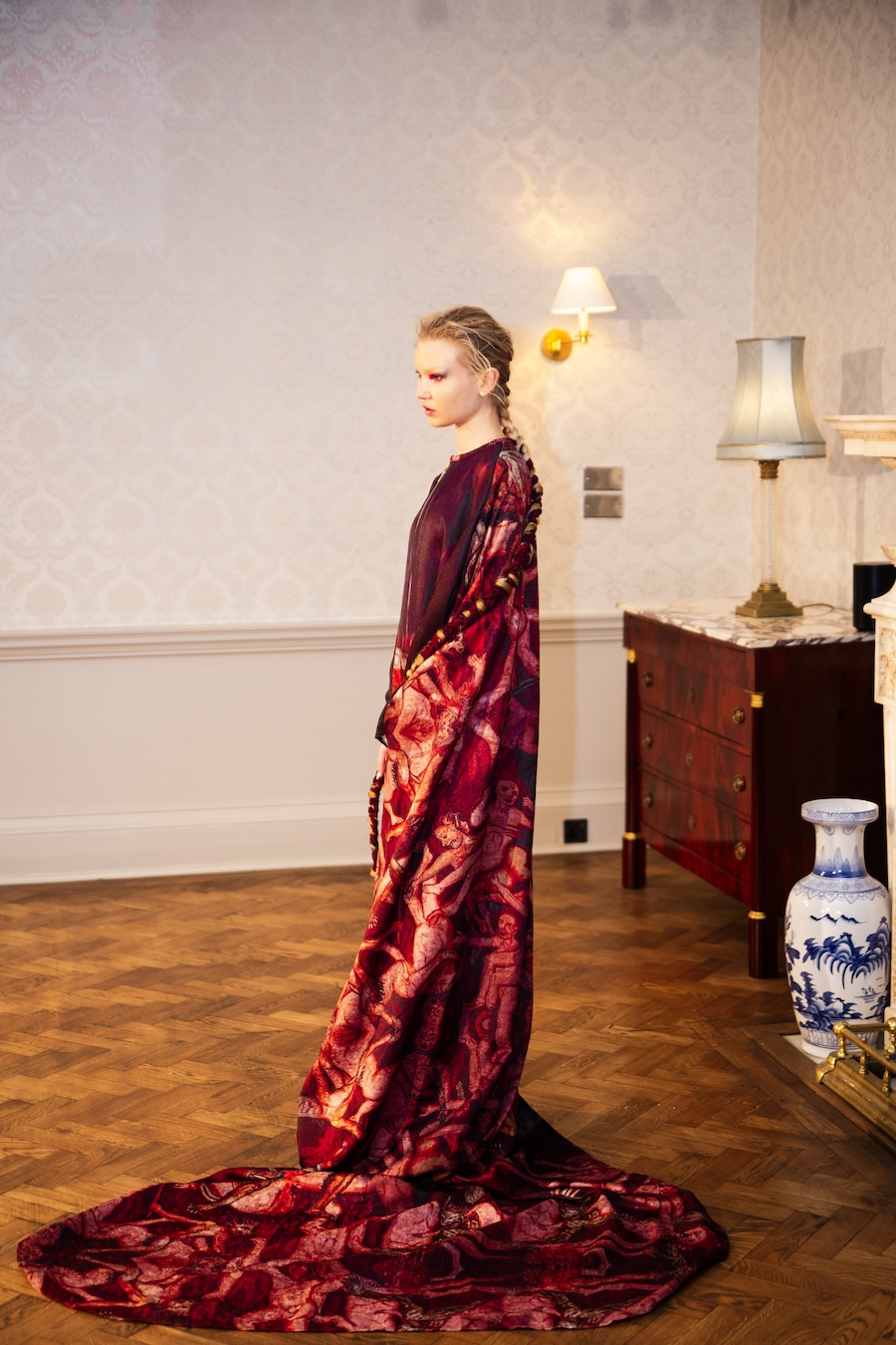 The inspo? Not your usual Pinterest moodboard. Rivas trekked 19 hours into the Andes to stare at 19th-century baroque murals in a tiny church near Cuzco, then staged his show at exactly 19:19 because, yes, there was an astrologer involved. We love a designer who plans his runways by the stars.