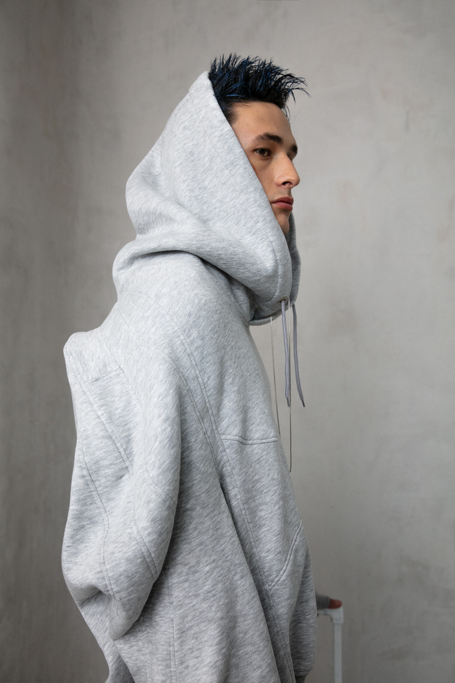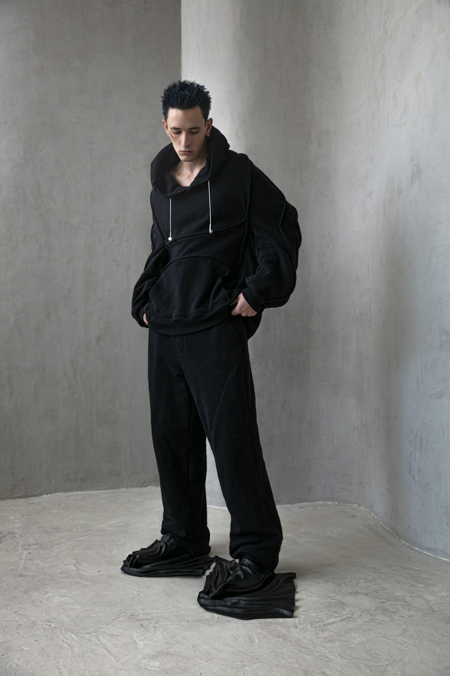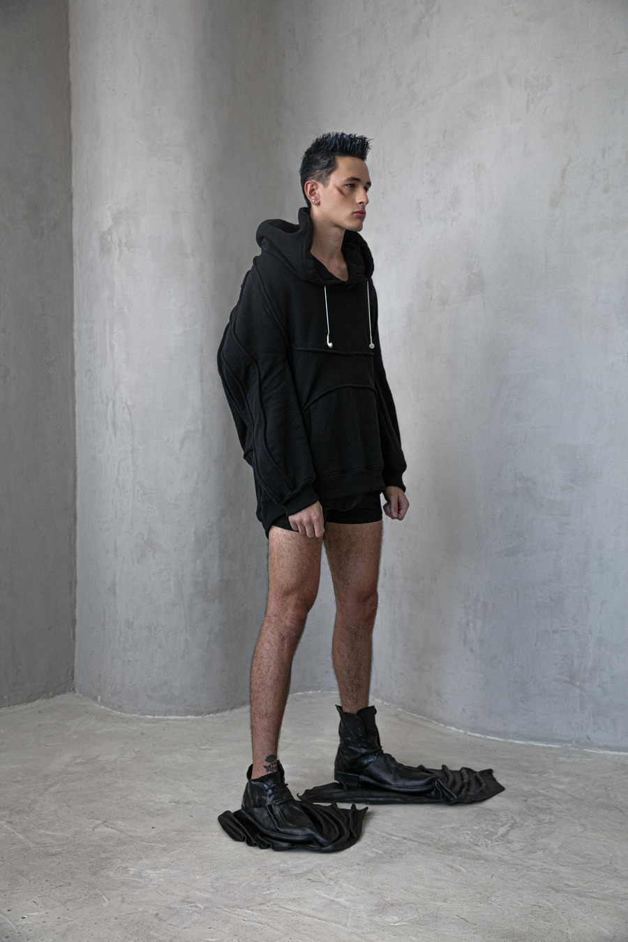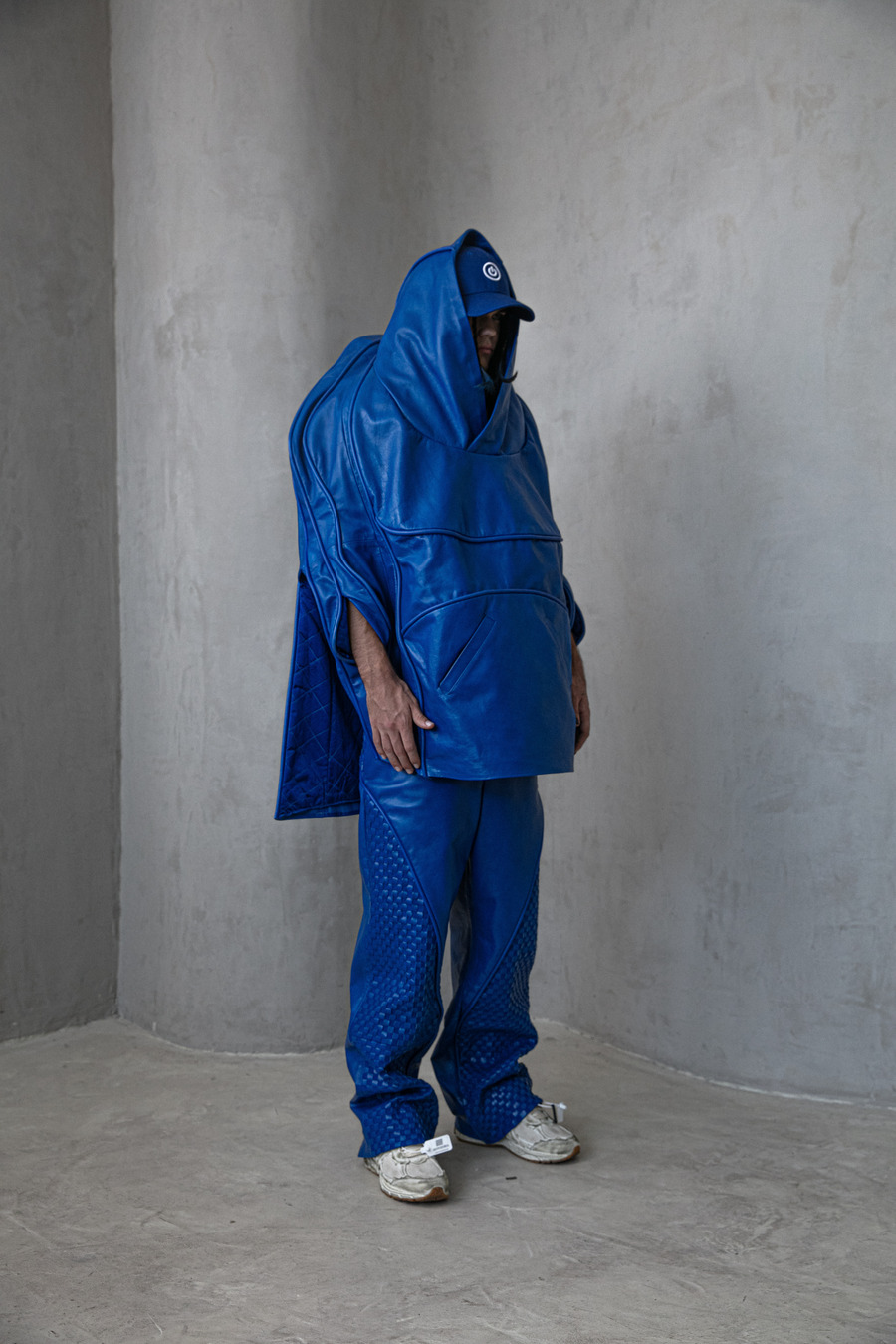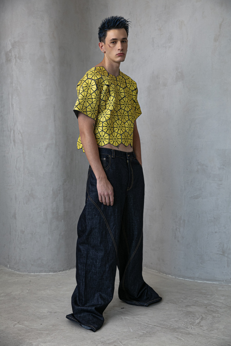 “I have integrated elements from the digital world into fashion, such as transforming gaming chairs and computer elements into clothing components. For example, a gaming chair is reimagined as part of an outfit, converting it into something one can wear. Yellow computer mouse pads and the reconceptualization of computer cases into fashionable suitcases are also part of this project. The result is a unique streetwear line that merges hoodies and leather, marrying the realms of art and fashion.”