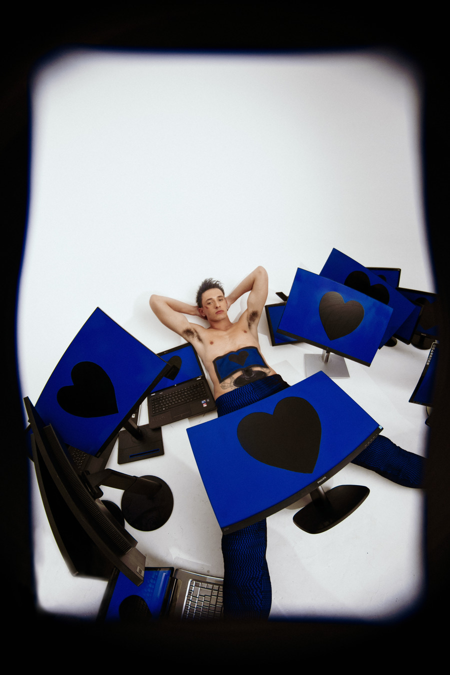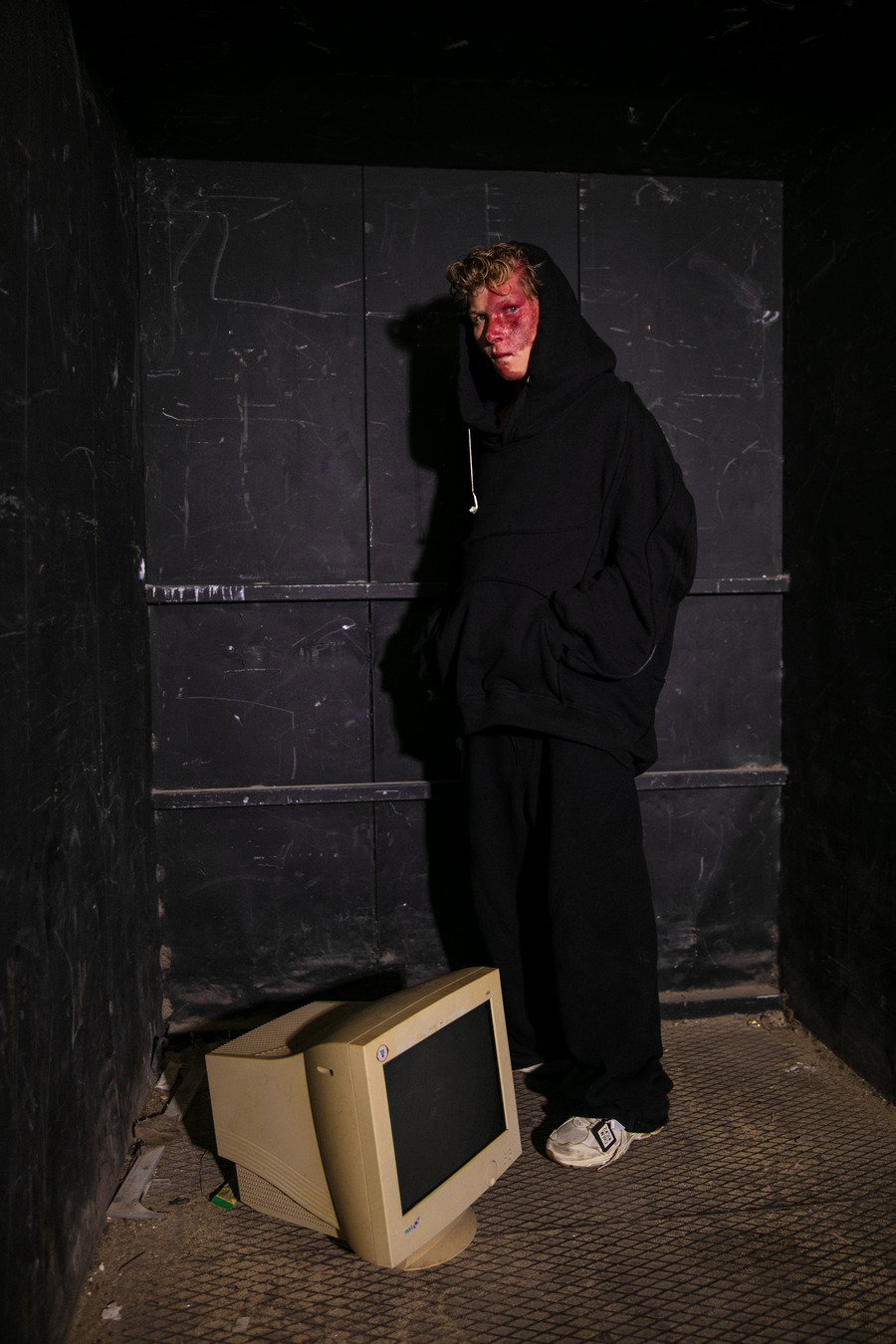 A KALTBLUT exclusive by photographer Saar Pesach. “This project investigates why screens are so captivating and why Generation Z is deeply engaged with them. It artistically conjoins the notion of time with apparel, deriving inspiration from the digital realm, including gaming, hacking, and the typical lifestyle of today’s youth.”