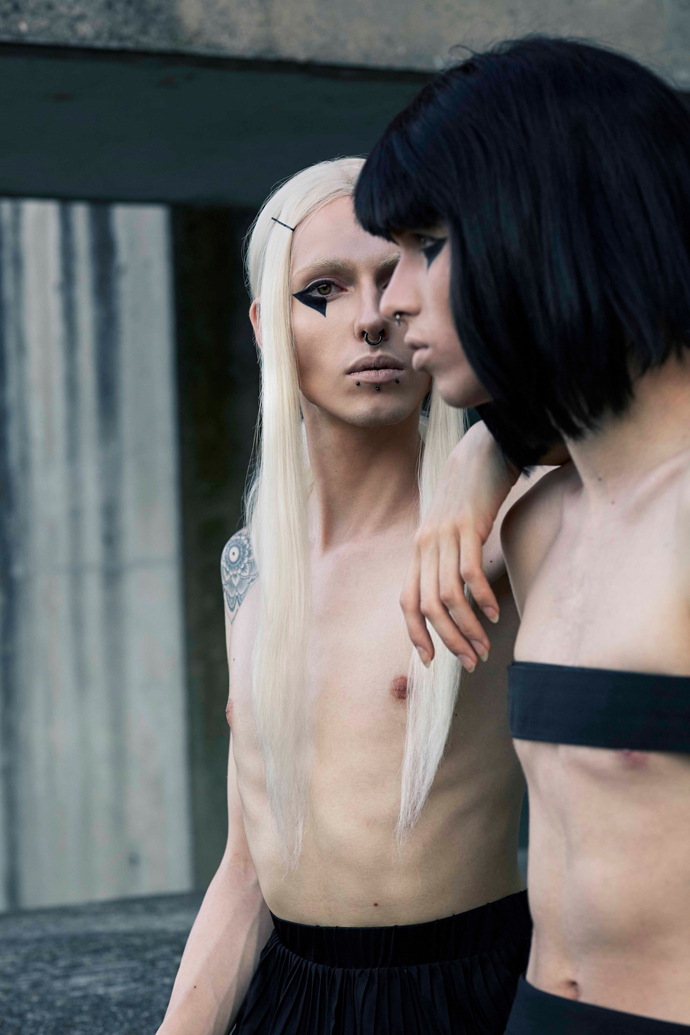 A KALTBLUT exclusive fashion editorial. Photography by Franziska Liehl. Models are Elai Menai and Lunem Noc. “Photography for me is a way of communication. It allows me to explore somebody’s personality and get to know them on a deep and intimate level. It instantly breaks any boundaries and all that’s left are the photographer and the model engaged in a visual conversation.” says the photographer. Make up and styling by Elai Menai and Lunem Noc.