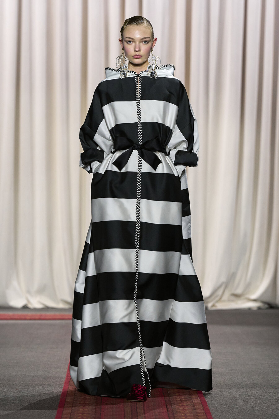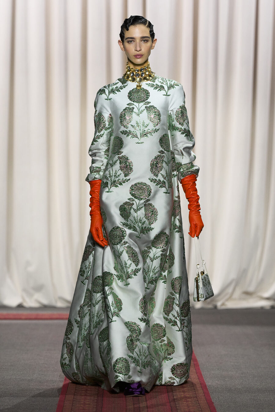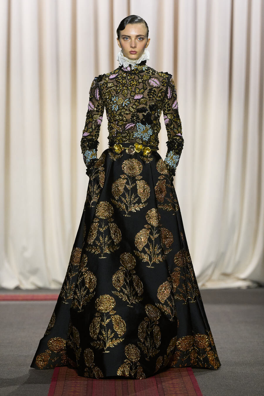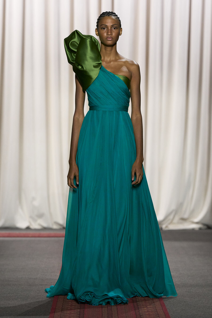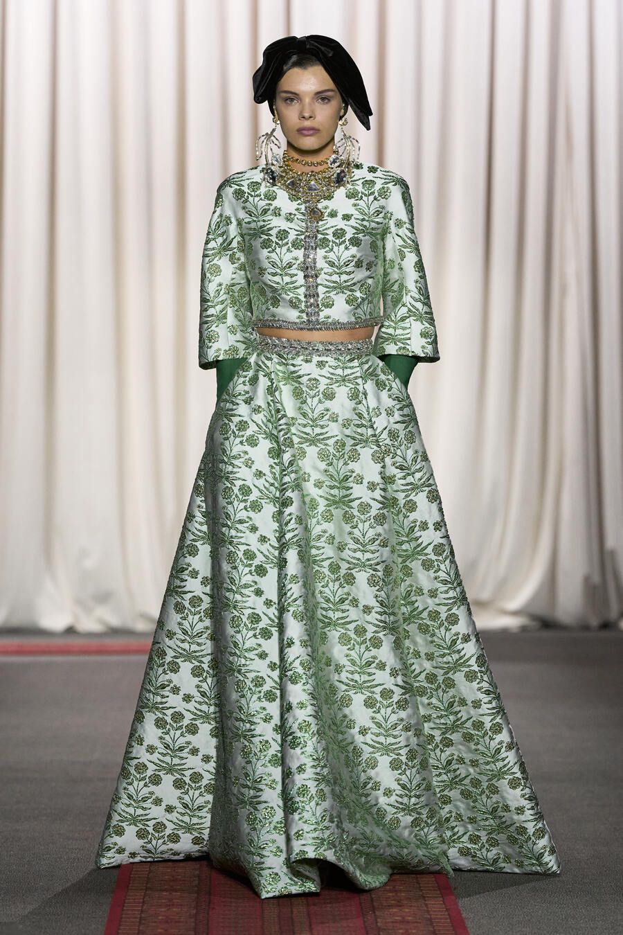 In Valli’s world, couture is synonymous with fantasy—a notion rooted in the designer’s narrative and influences from distant lands. For Spring 2025, he draws inspiration from his Moroccan heritage, beautifully intertwining personal history with grand, unapologetic silhouettes that take centre stage, elevating the notion of couture to an art form that speaks both to the imagination and cultural richness.