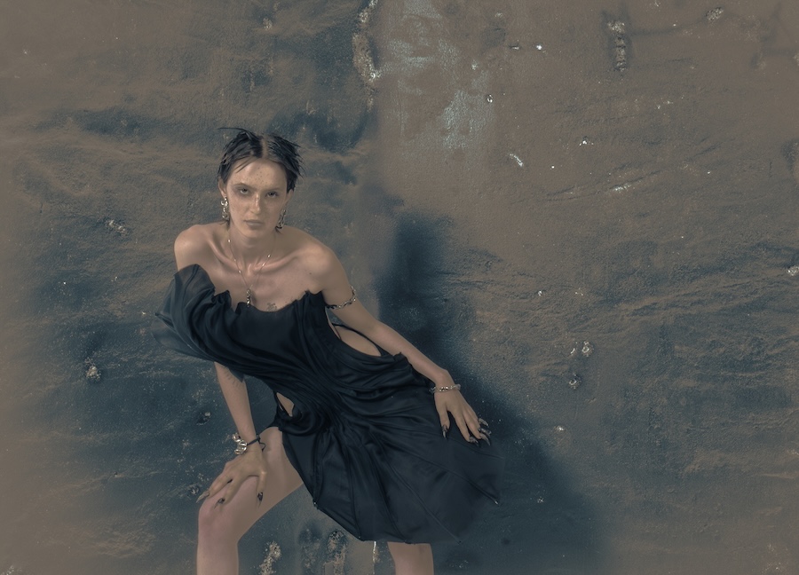 “Wrapped between sky and sea, yet so far from dreams.” A KALTBLUT exclusive. Photography by Scarlett Rose. The model is Lisa Soubias, signed at Metropolitan Models Group. Styling by Anthony Goetzmann. Make-up by Anna Koral. Hair by Sandy Ackermann. Set design by Jessica Khawam. Movement direction by Leonel Bardot. Fashion Brands used are Studio Juliette Pasquier, Michaël Fournière, Mugler, Konul Aghaieva, Cem Cinar, Trashy Clothing, Diesel, MI Studio, Kriba, Justin Matringe.