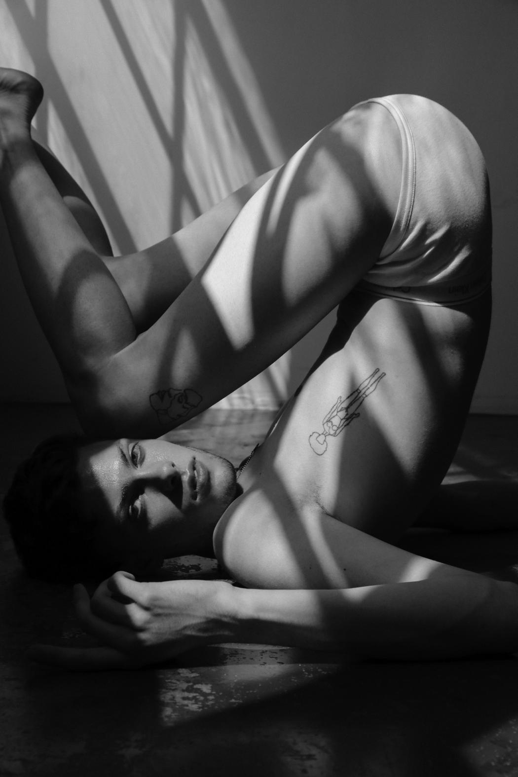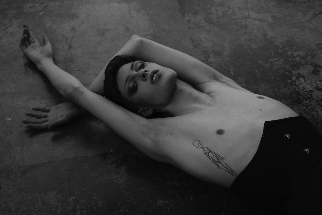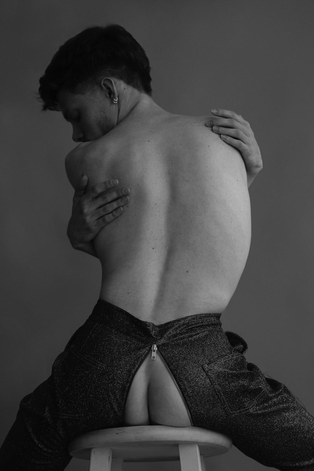 This series poses the idea of life as a performance, a recurring theme in Dayan’s work. David-Simon Dayan explores the process of transformation in turning his lens on drag performer, Gigi Goode, presented here, barefaced and hardly dressed, looking directly to the camera, and rebelliously applying makeup. By using black and white, the work creates an intimate, timeless feel, in stark contrast to the vibrant world of drag. In documenting Goode in various stages of their process, allowing the viewer access behind the veil, Dayan studies the delicate and performative nature of gender.