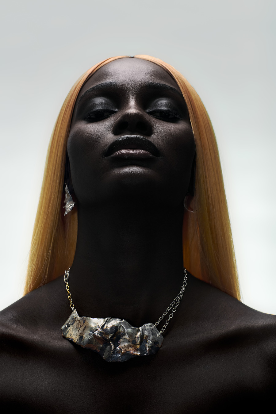 The latest collection, LIQUIDE MODERNITY, serves as a testament to MELOSI’s adventurous spirit, delving into the fluidity and metamorphosis inherent in contemporary self-expression. This collection is a sculptural feast for the eyes, with pieces that explore dynamic themes of folding, crumpling, and bending, reflecting the ever-evolving nature of identity in today’s world.