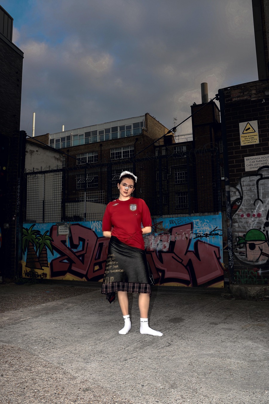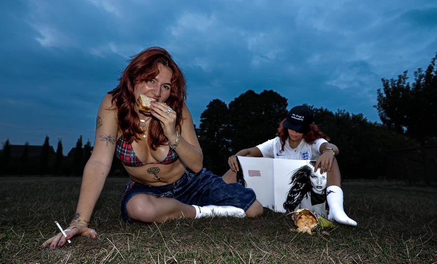 ‘Girls, So English’ is an outsider’s homage to British youth culture, viewed through an observer and consumer lens. Having lived in England for many years, this sense of distance from my heritage shapes my work as I explore themes of identity, belonging, and cultural context through photography. The series explores the duality and layers of identity, from echoing Vicky Pollard to romanticizing England’s cold summer sky, exploring football culture and reflecting the tension between pride and domestic violence tied to the sport. A tribute to Britain’s own Rankin, his work on nudes is woven in, with the subject mimicking poses from his photo book as a metaphor for stripped-down British identity.