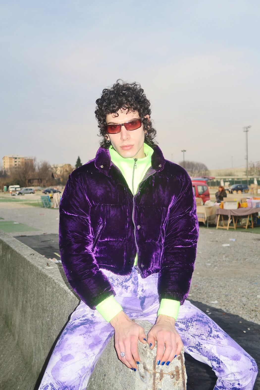 A KALTBLUT exclusive from Milan. Photography by Alessandro Ruggieri. Styling by Diego Bernardelli. Models are Maurilio Lima and Matteo Paglierani. The shooting took place around the flea market of “Piazzale Cuoco”. All clothes are second hand / vintage / mostly no brand and some were picked from the flea market during the shooting and used right away.