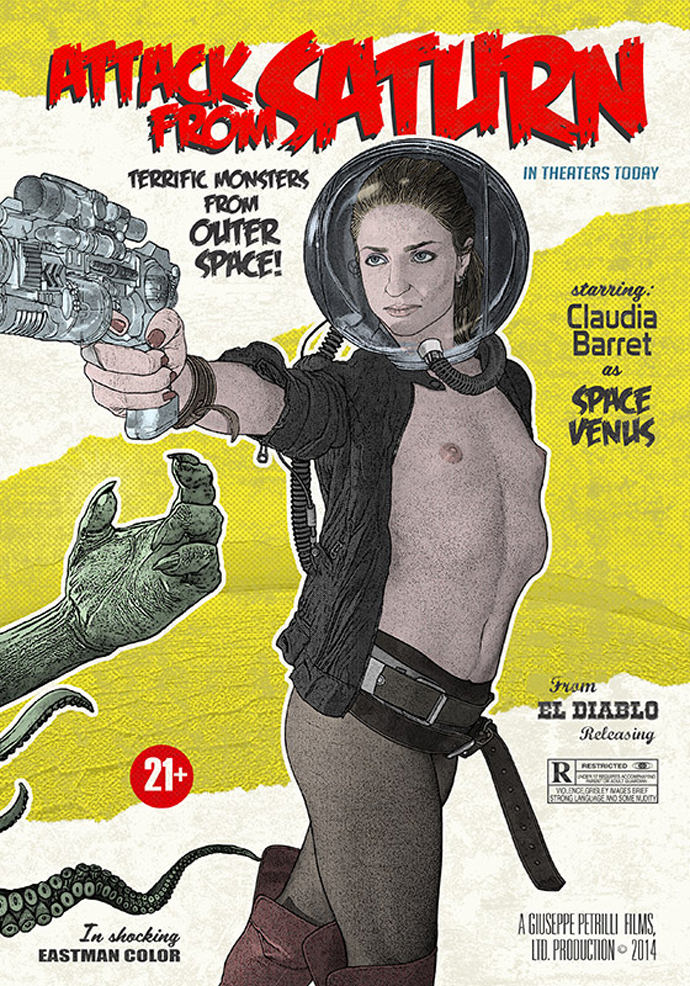 Giuseppe Petrilli is an italian painter and illustrator and his artistic activity developes on two levels and into a double production: the pictorial and digital. The “True_Fakes” series is a further evolution of this alchemy and consists of invented movie posters, inspired by B-movies of the years 60/70.
