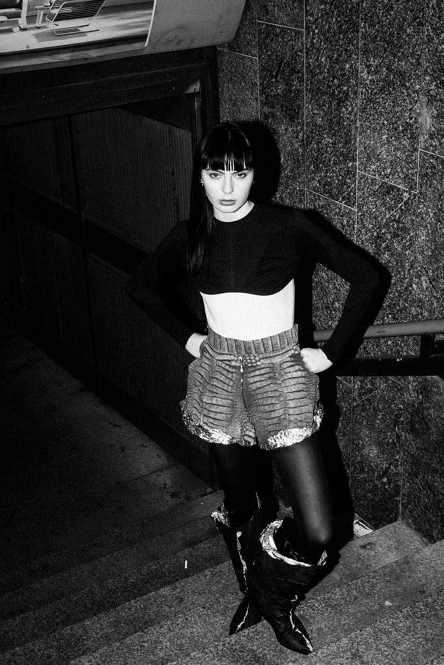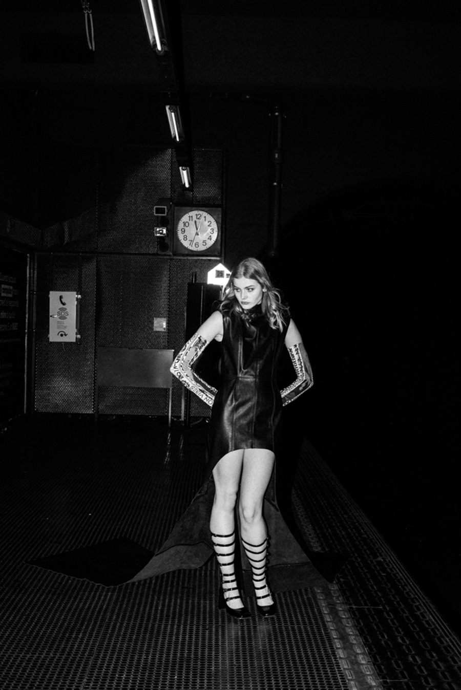 “In a striking synthesis of raw grit and haute couture, this editorial embodies the exhilarating intersection of glam punk rebellion and the timeless elegance of 90s supermodels. It channels the audacious spirit of punk’s make-do ethos, juxtaposed with the sleek sophistication of runway legends, crafting a study in contradictions where beauty meets defiance.