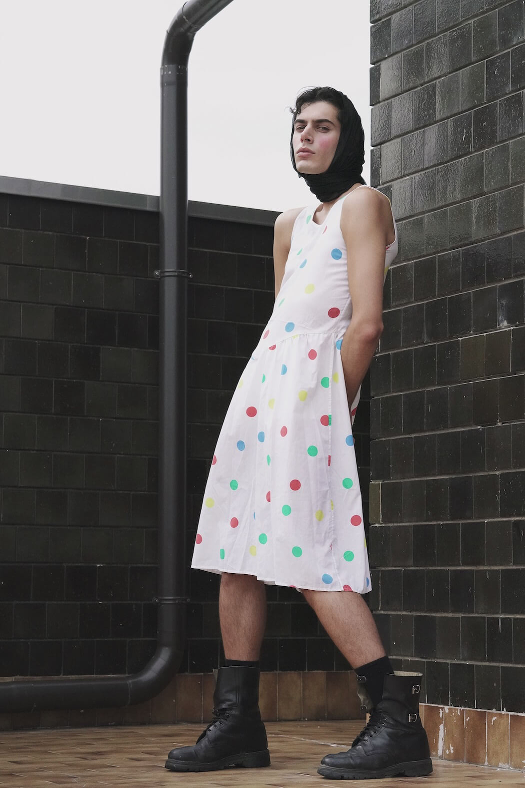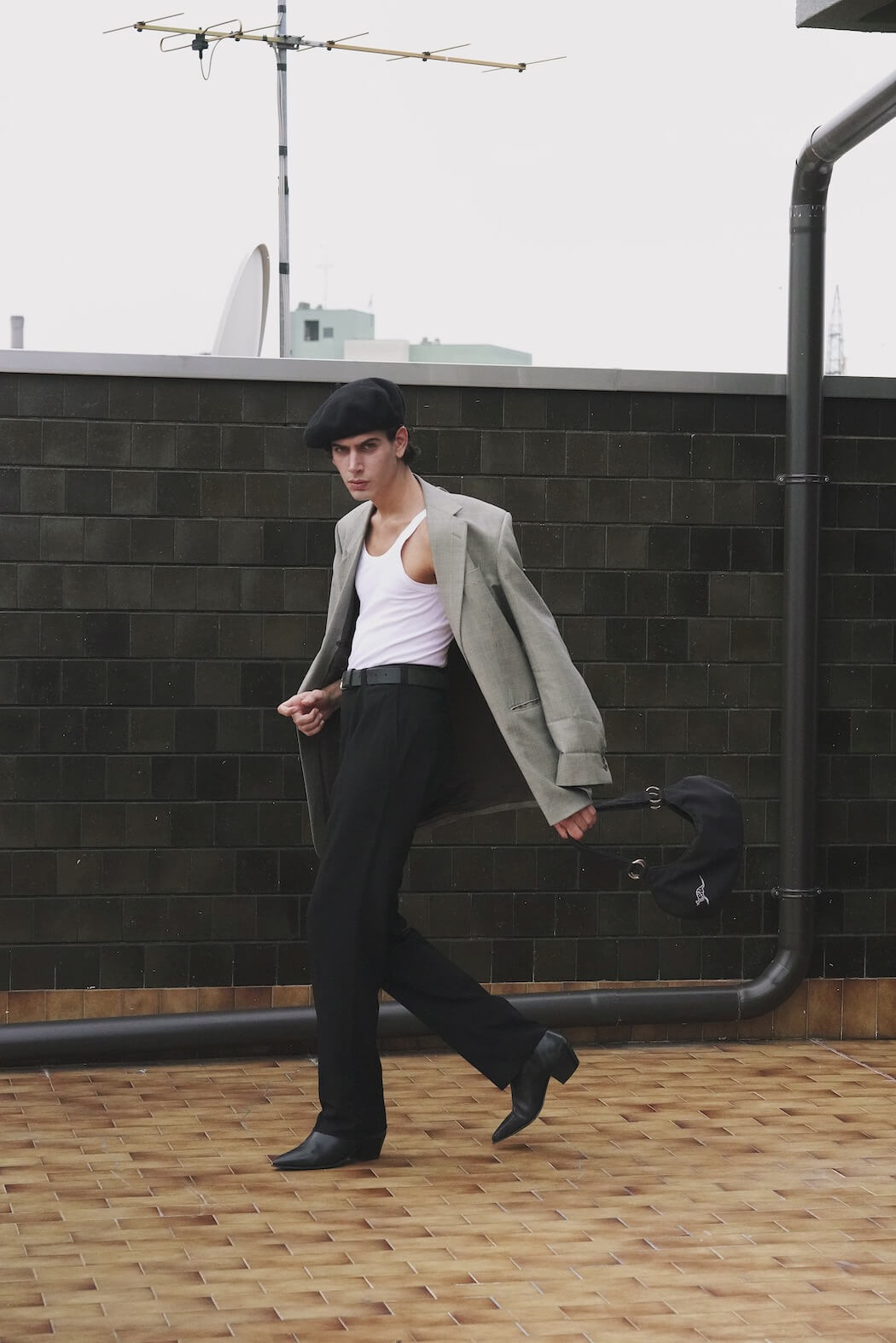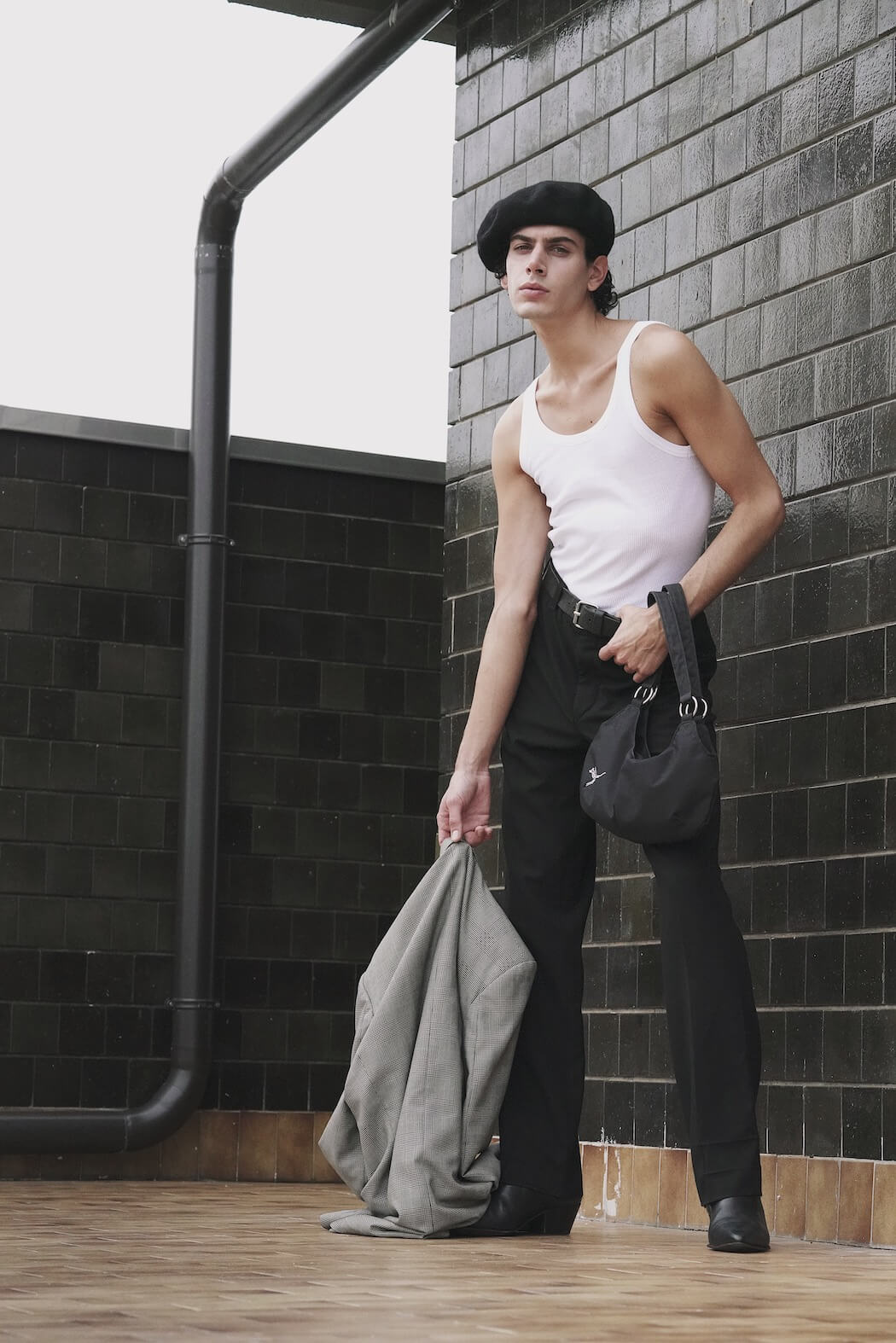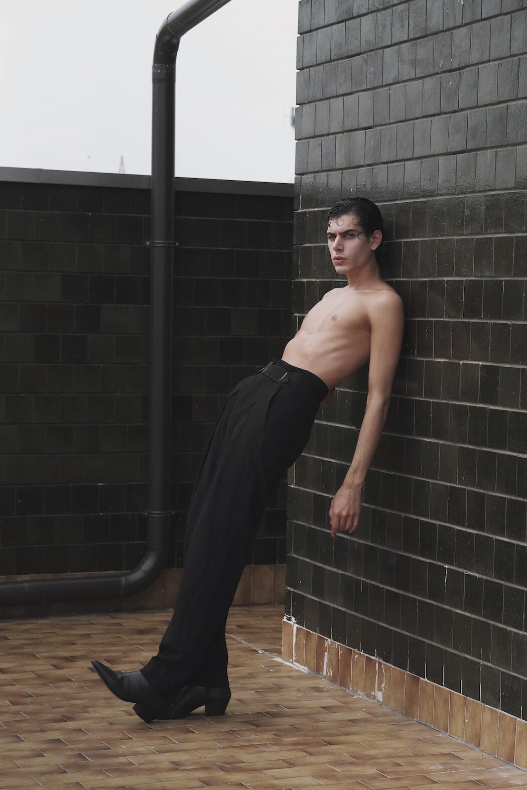 A KALTBLUT exclusive menswear editorial. Photography by Andriana Tuesday Kmetyk. Styling by Mariia Shevchenko. Model is Matteo Paglierani. Brands are Prada, Zara, Lewis, Calzedonia, Vintage, Dr. Martens.