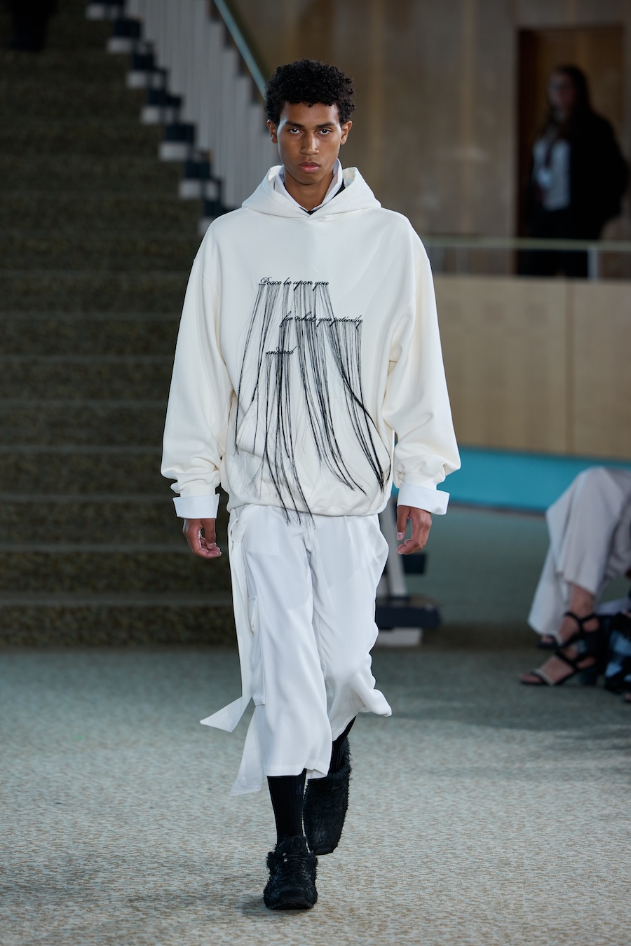 The collection, conceptualised by designers Benjamin Huseby and Serhat Işik, resonated deeply with the audience through its politically charged and poetic narrative. It posed an essential question of our time: How can we continue to live, love, and retain our identities amidst the world’s challenges?