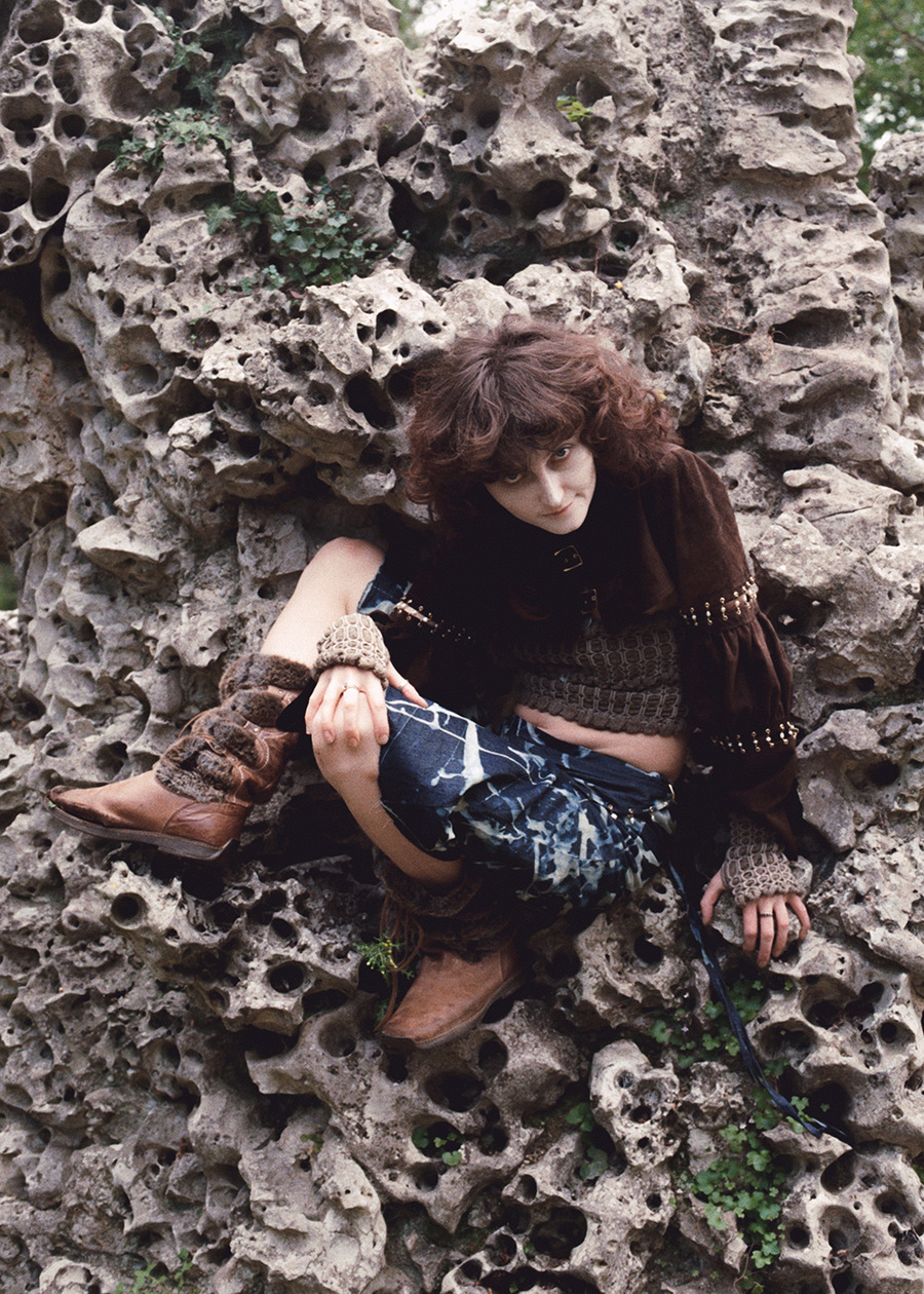 Although goblin mode was added to the Oxford dictionary in 2022, its aesthetic is in need of some refinement. In this editorial, moss colours combine with the protruding rock surfaces of Painshill Park in Surrey to imagine a 21st century goblin in the peace of their own domain.