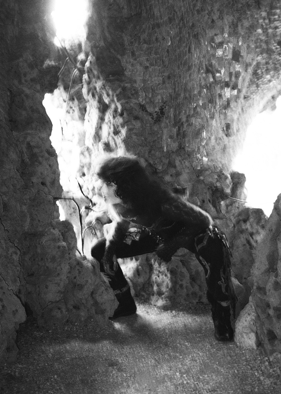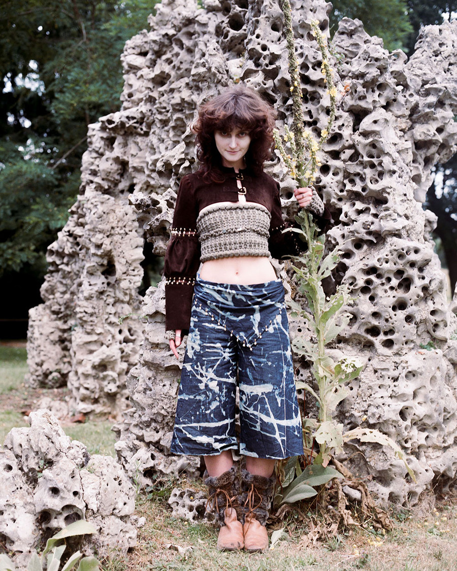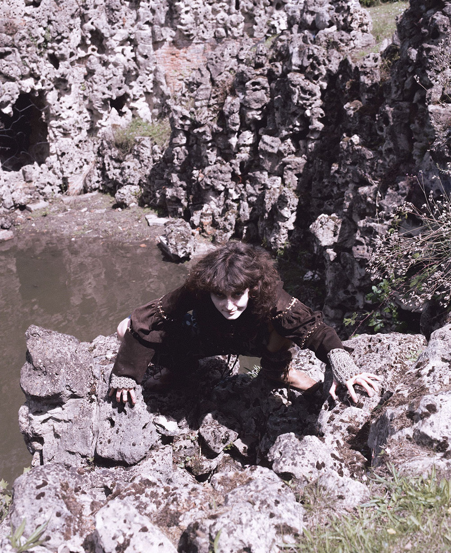 Although goblin mode was added to the Oxford dictionary in 2022, its aesthetic is in need of some refinement. In this editorial, moss colours combine with the protruding rock surfaces of Painshill Park in Surrey to imagine a 21st century goblin in the peace of their own domain.