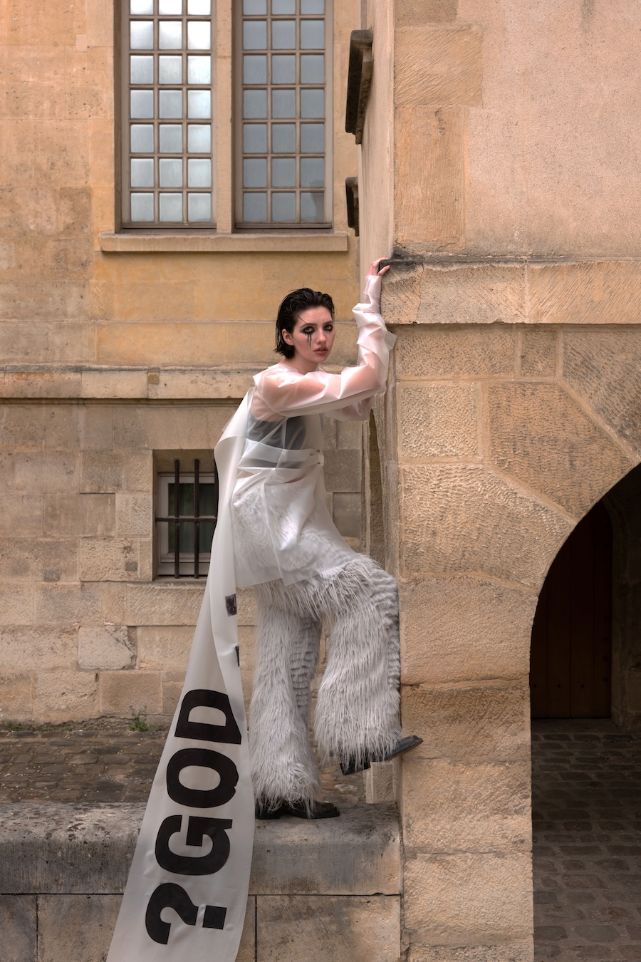 This piece embodies my quiet rebellion, a time when I dared to question — even deny — the presence of God. My brand, PCR:042, is a conceptual fashion project born from emptiness, built on pillars of raw clarity and resistance. It focuses on made-to-order garments, performance-infused fashion, and unique, one-of-a-kind pieces that navigate silence, tension, and transformation.”