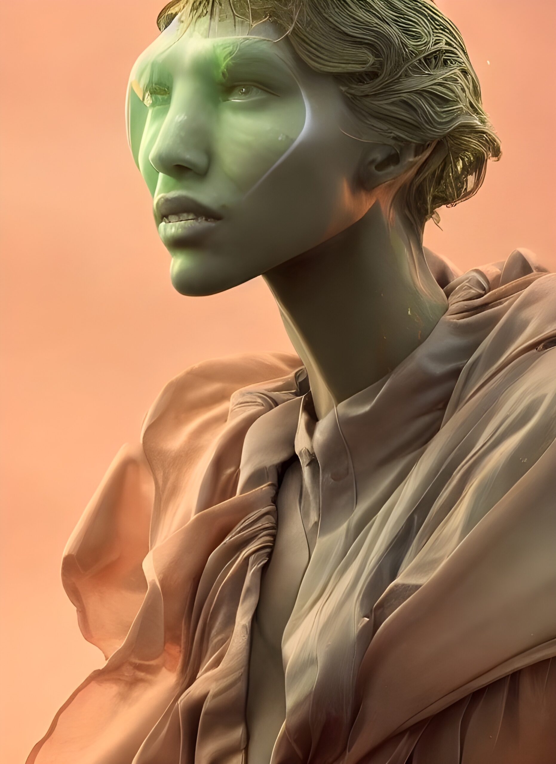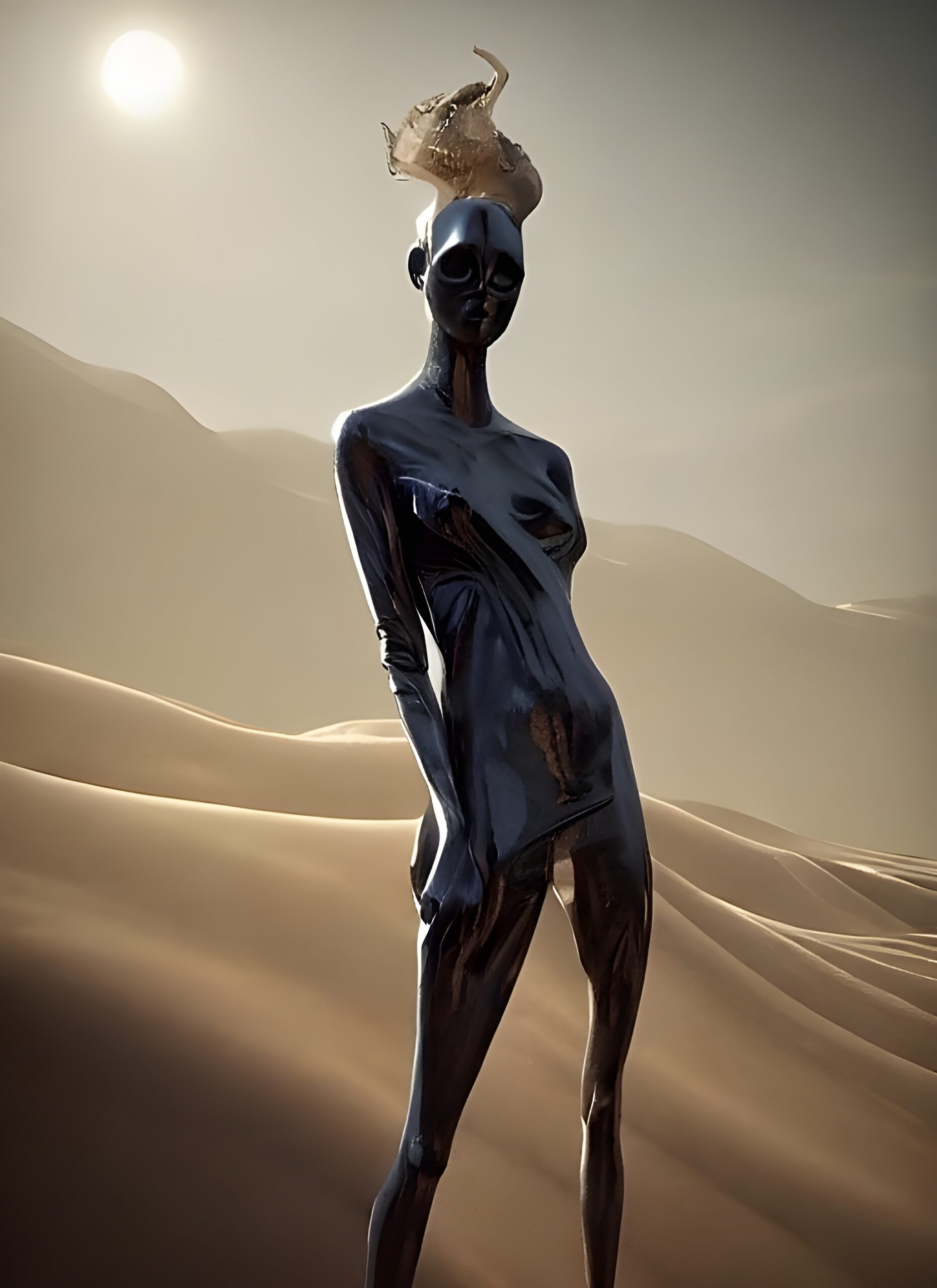 A KALTBLUT exclusive by Lewis Robert Cameron. From demons to demi-gods, blurring the lines between costume and chaos, haute couture and horror, this entire AI-generated fashion story explores the dystopian, space opera-surrealist works of Frank Herbert and Mark Miller.