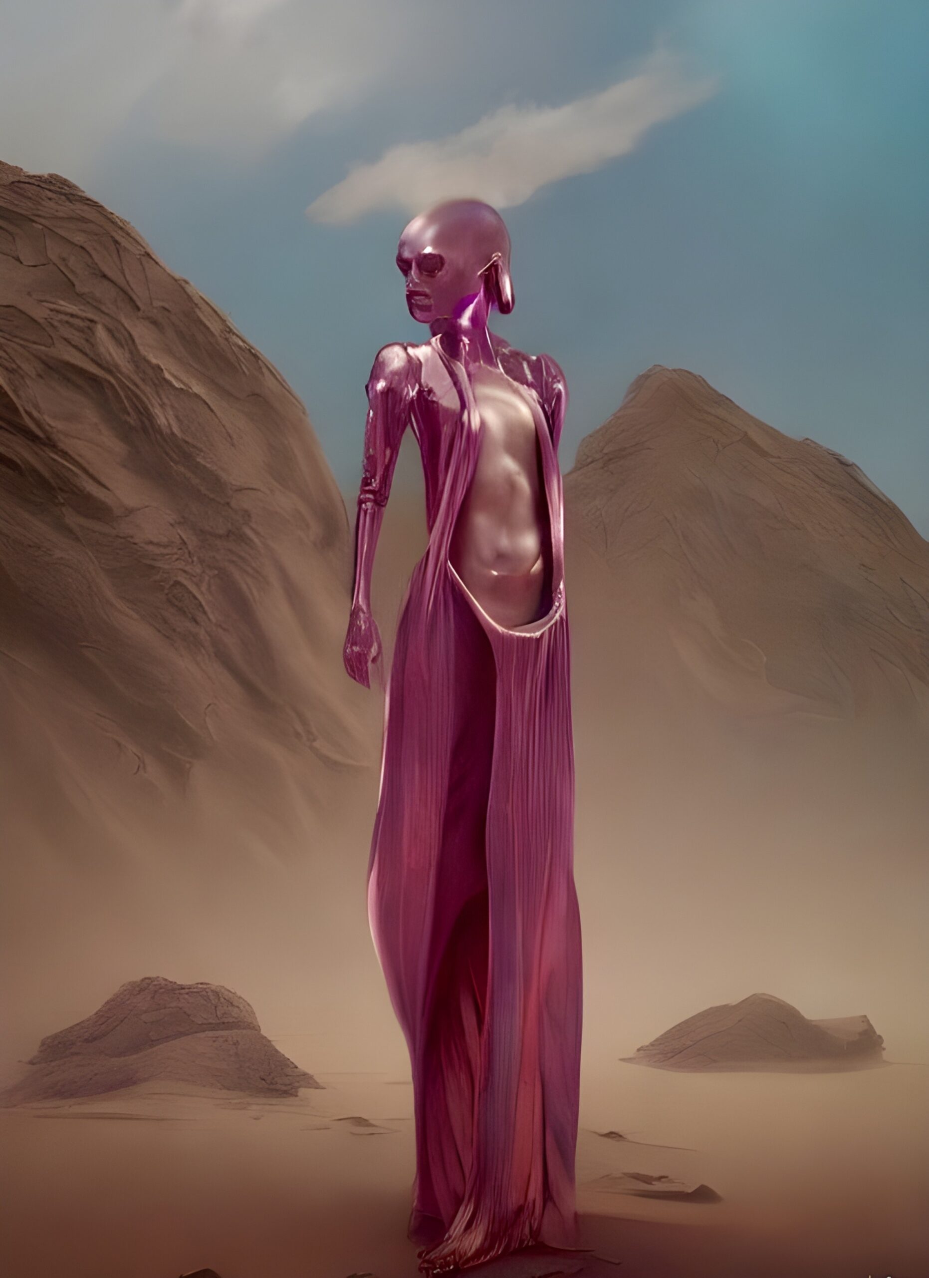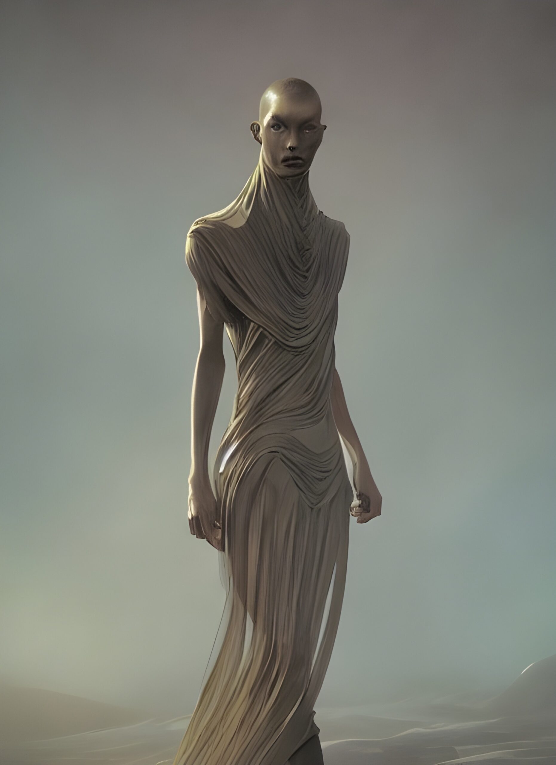 Fashion inspired by concept art and couture collections from Alexander McQueen, Schiaparelli, Iris van Herpen and Balmain. Creative direction and AI styling by Lewis Robert Cameron.