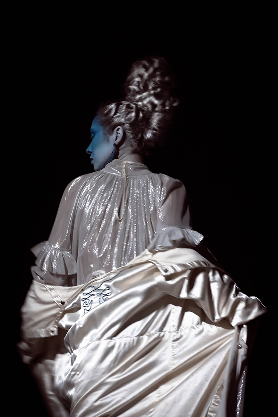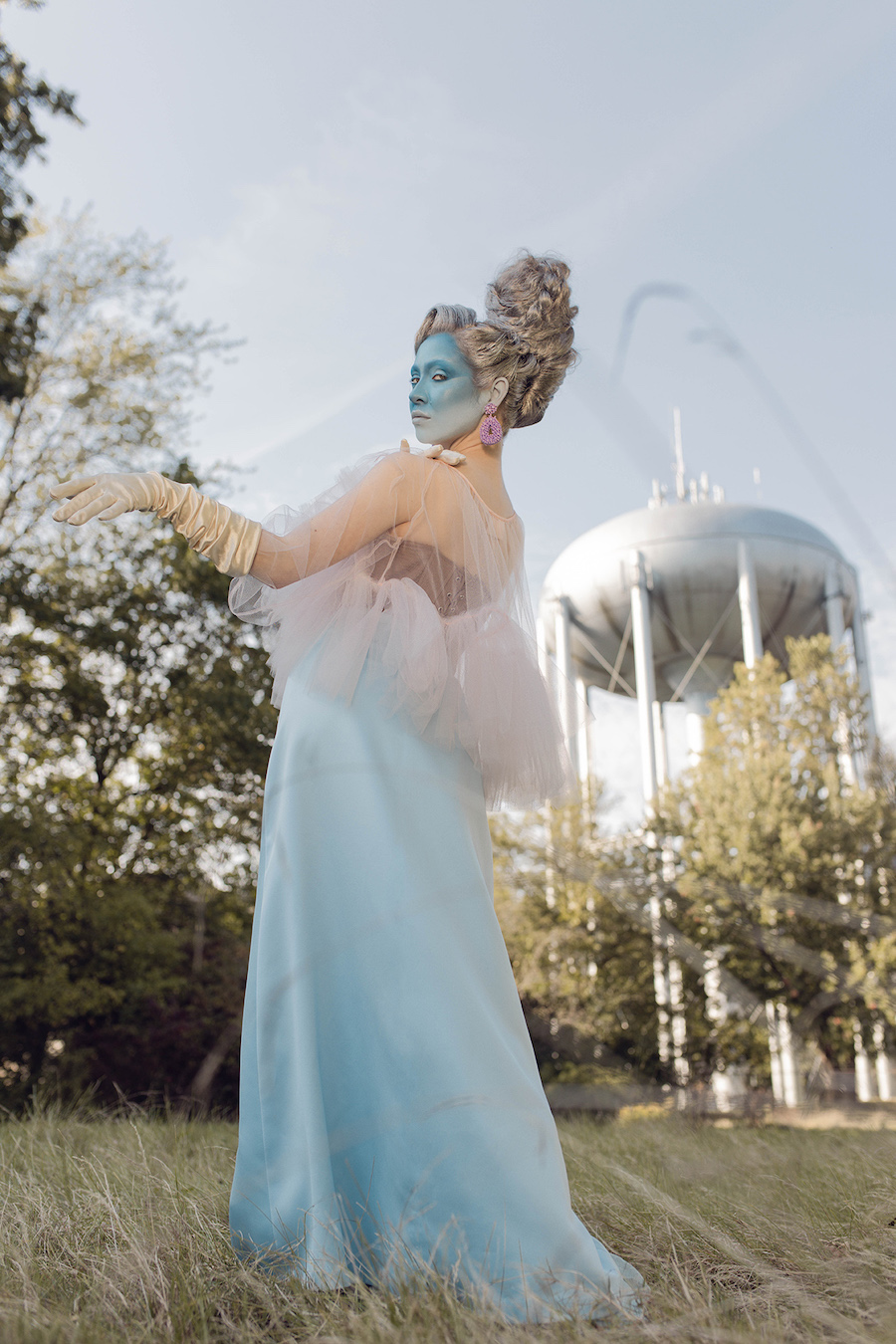 Going Up? was planned and executed in collaboration with a local, fully vaccinated team wearing masks during all preparations. “We did not want our need to create outweigh our responsibility to our community to limit the spread of Covid-19, so all safety precautions were taken in every step of planning.” The location for the shoot was chosen for its proximity and atmosphere, which until recent years was a manicured golf course. The restoration of the landscape is bringing about long-term substantial improvements to water and air quality in the nearby city where the team resides. “I walked here a lot in 2020 and 2021,” Leigh Ann said,“seeing nature reclaim a previously manipulated landscape was really restorative. I wanted this shoot to be as much about sometimes-wanting-to-get-out-of-here as it is a celebration of those people putting in the work to make this world a better place. Without the efforts of those empathetic people Earth would be void of humanity.”