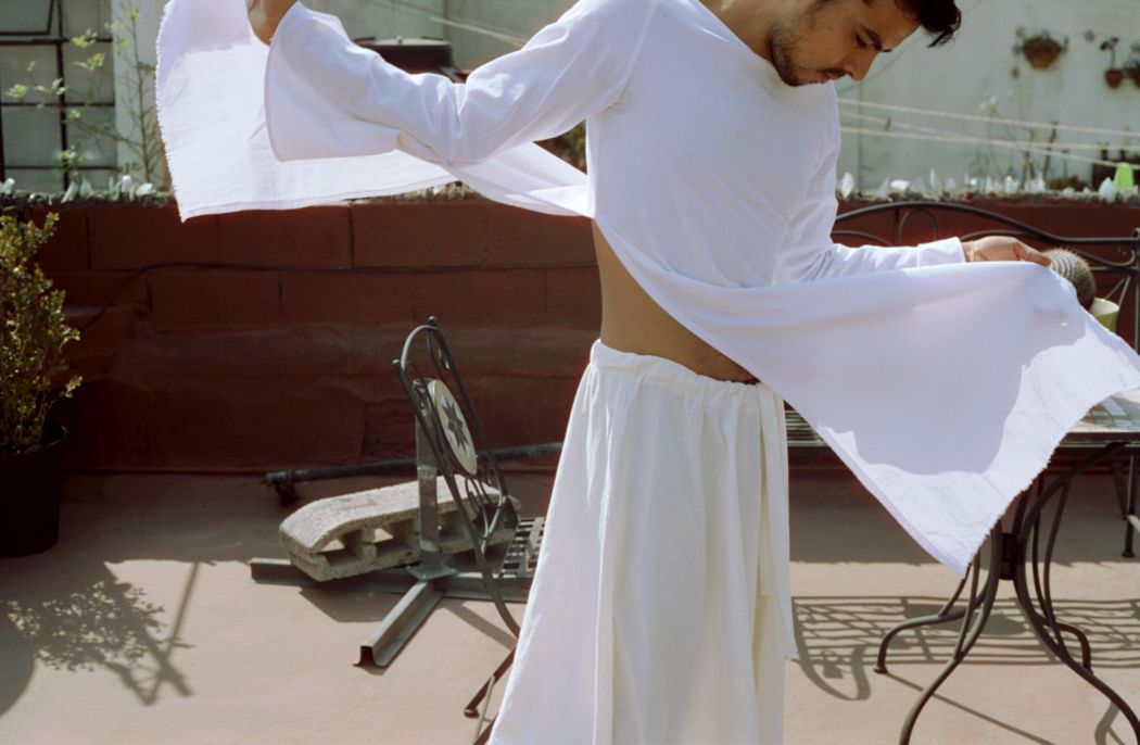 A KALTBLUT exclusive. Photography by Genevieve Medow Jenkins. Model is Carlos Altamirano in Mexico City. Styling by Gabriella Zamora using Golondrina Collection. “Growing up in Big Sur, California, my photography is heavily influenced by the natural atmosphere and the things that inhabit that space. My relationship to capturing moments began with a 35mm camera I purchased in a nook of Neuköln in Berlin 6 years ago. I have worked in analog ever since, whether it be fashion, lifestyle, art or tour photography. In this series, I wanted to capture a slice of the beauty of Mexico City with work of a local designer and model. The goal is to always convey authenticity in all of my work and Mexico City is so vibrant and alive, as are the artists there. Clothes made of organic cotton sewn by one woman in the Yucatan feel nostalgic even in a bustling city that is now bustling with tourism and change. I love capturing this liminal space and time and the people who exist within it.” says Genevieve Medow Jenkins.