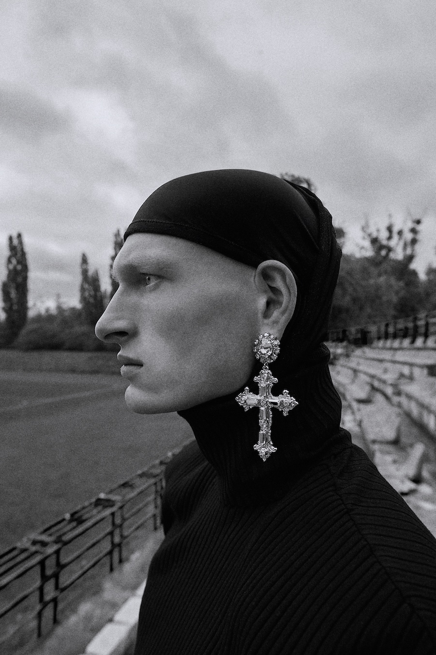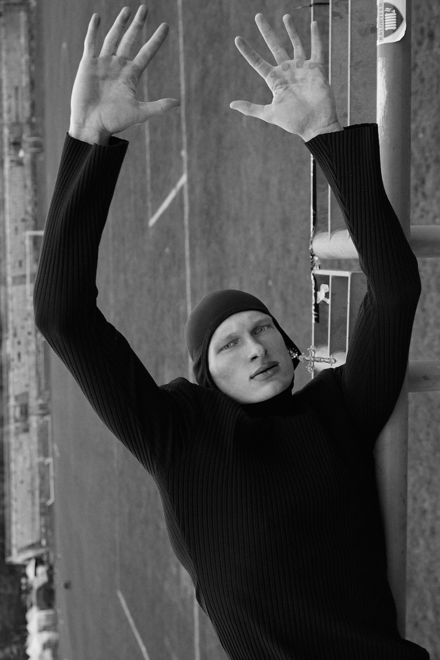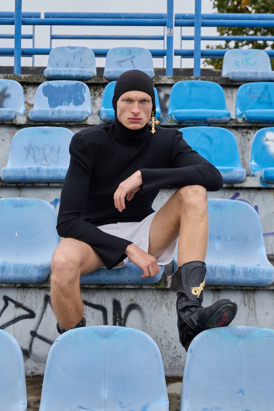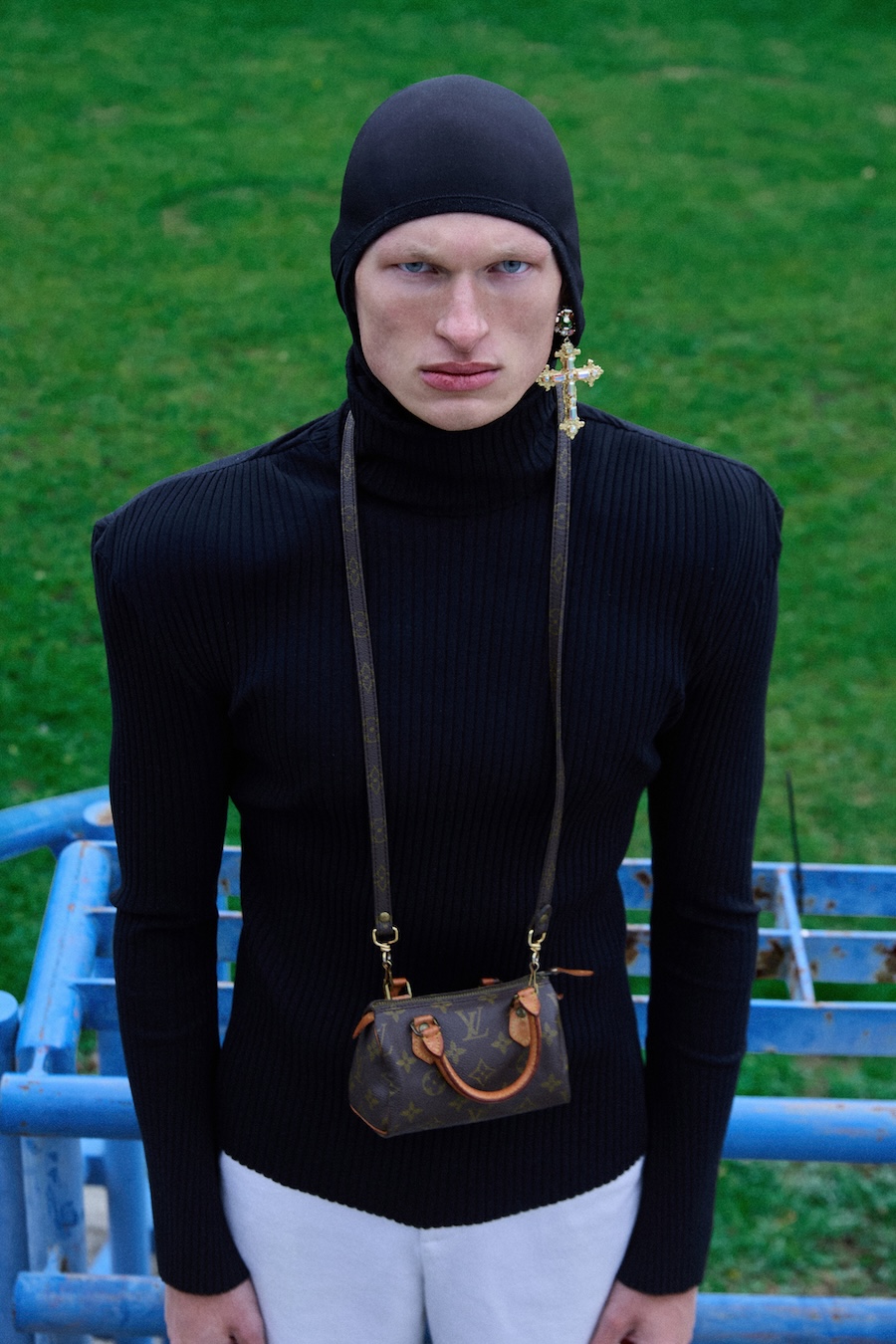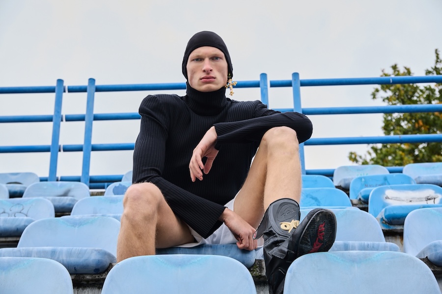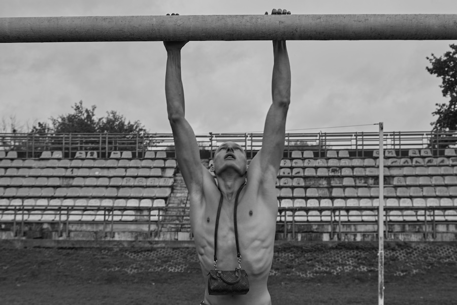 A KALTBLUT exclusive. Photography by Robert Ryncarz. The model is Michał Górecki from Imgmt. Styling by Aleksander Kotłowski. The brands used are Louis Vuitton, Iceberg, Ami Paris, MMC, Kust., Oakley, Dr Martens x Margiela, Oh Very, Jan F. Chodorowicz, Black Wool, Adidas, and Vintage jewellery from TFH Concept Store Warsaw.