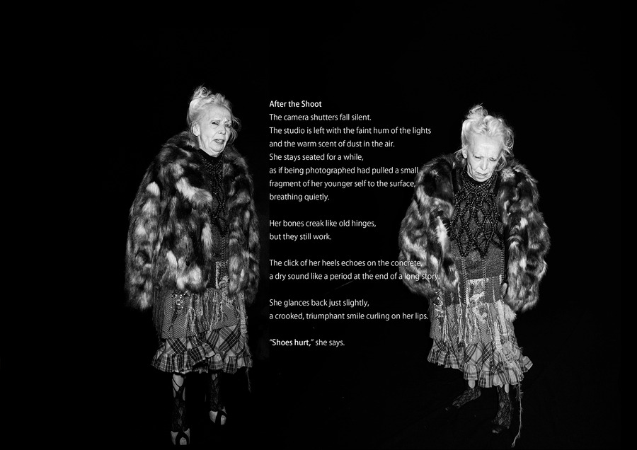 A KALTBLUT exclusive. Photography by Kaito Chiba. The model is Alla O. Art direction by Aoi. Hair and make up by Sarina Yamashita. Styling by Kota Koizumi using Kiko Kostadiov, Alexander Wang, Celine, and Heron Preston.