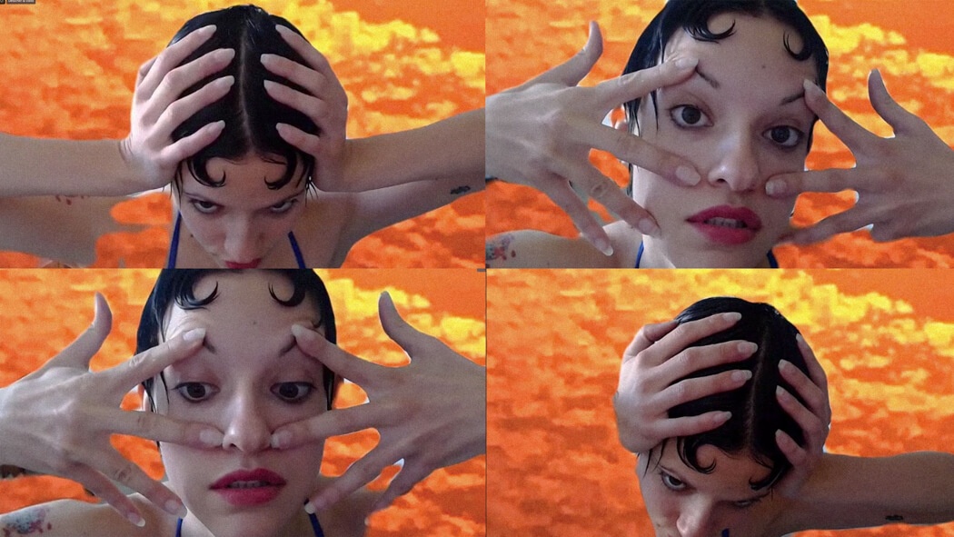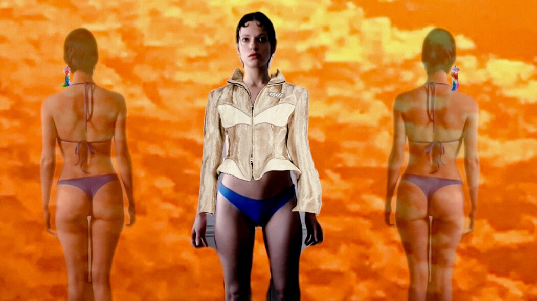 “We met right before lockdown with the project of working together on an editorial. With everything that happened, we decided to do it anyway, but shooting Mafalda, our model who lives in Lisbon, through our computers, integrating pictures that we took from our archives to the Zoom conversation’s backdrop. We took our inspiration in the kid’s stylists books. We collected the styling in order to dress up our model who was posing for us in a swimsuit.”