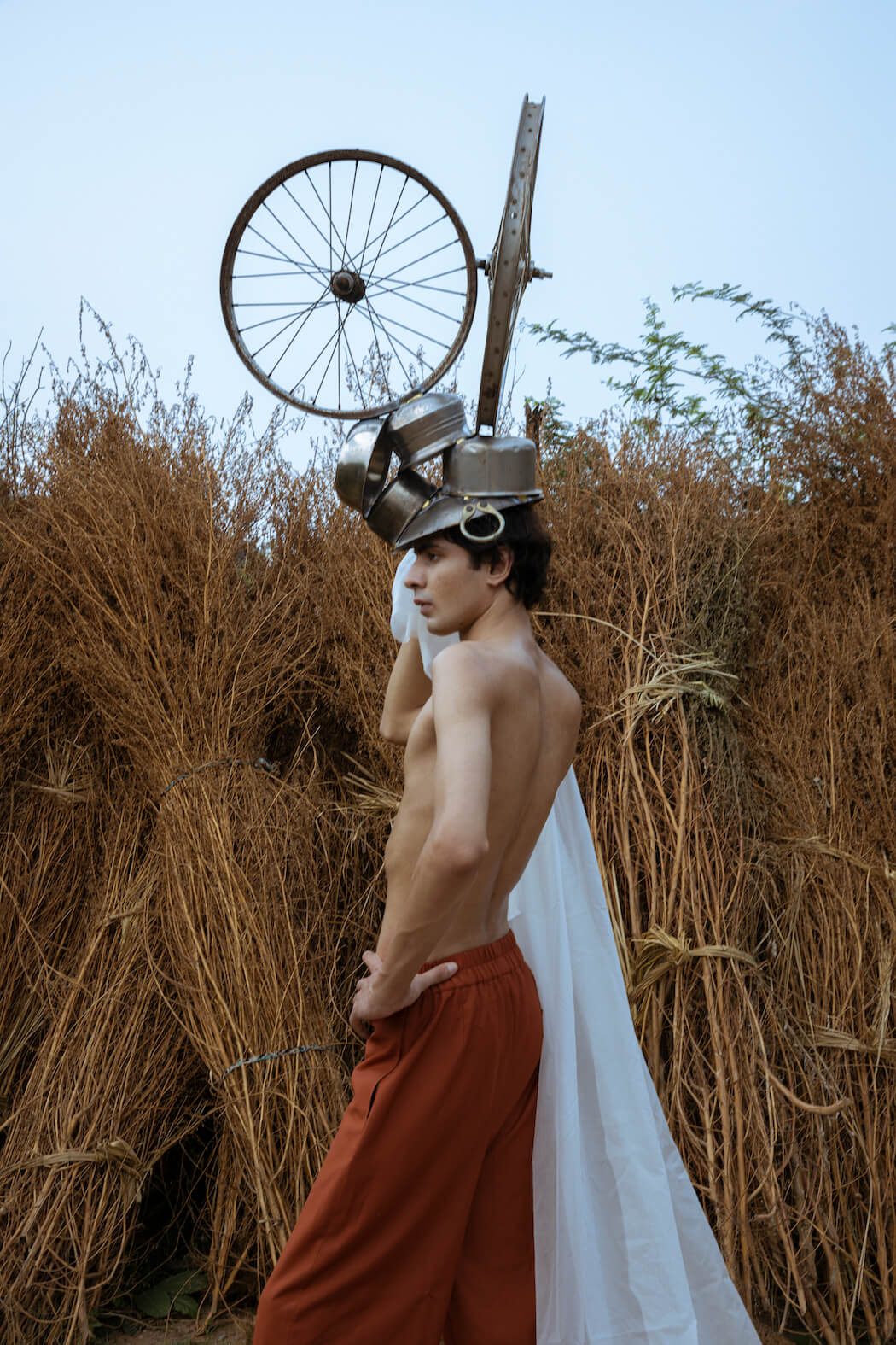 A KALTBLUT exclusive. Photography by Hansraj Dochaniya. Models are TJ Gil signed at Inega agency and Aryan Kholia. Styling and creative direction by Akansha Singh. “Every time I speak to an artist I see the struggle. The struggle of not having a sleep in weeks and later hearing that living on instant soup in order to have money to buy paint. Having the ability to express such beauty while we live in such despair. This myth is reason number 1 (the most important one) why parents advise their kids not to study art because they’ve seen bad examples of artists struggling financially or living in poor conditions as a result of pursuing their art.