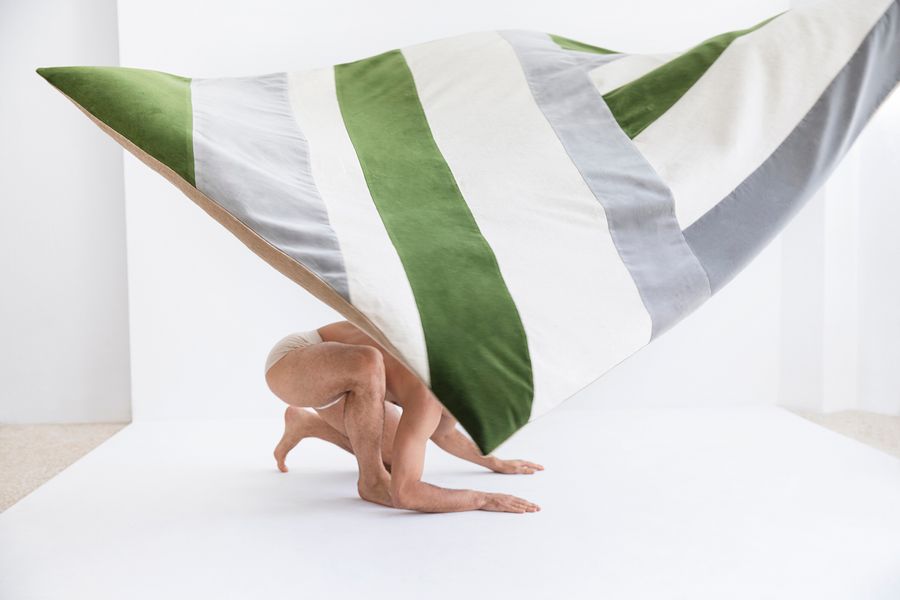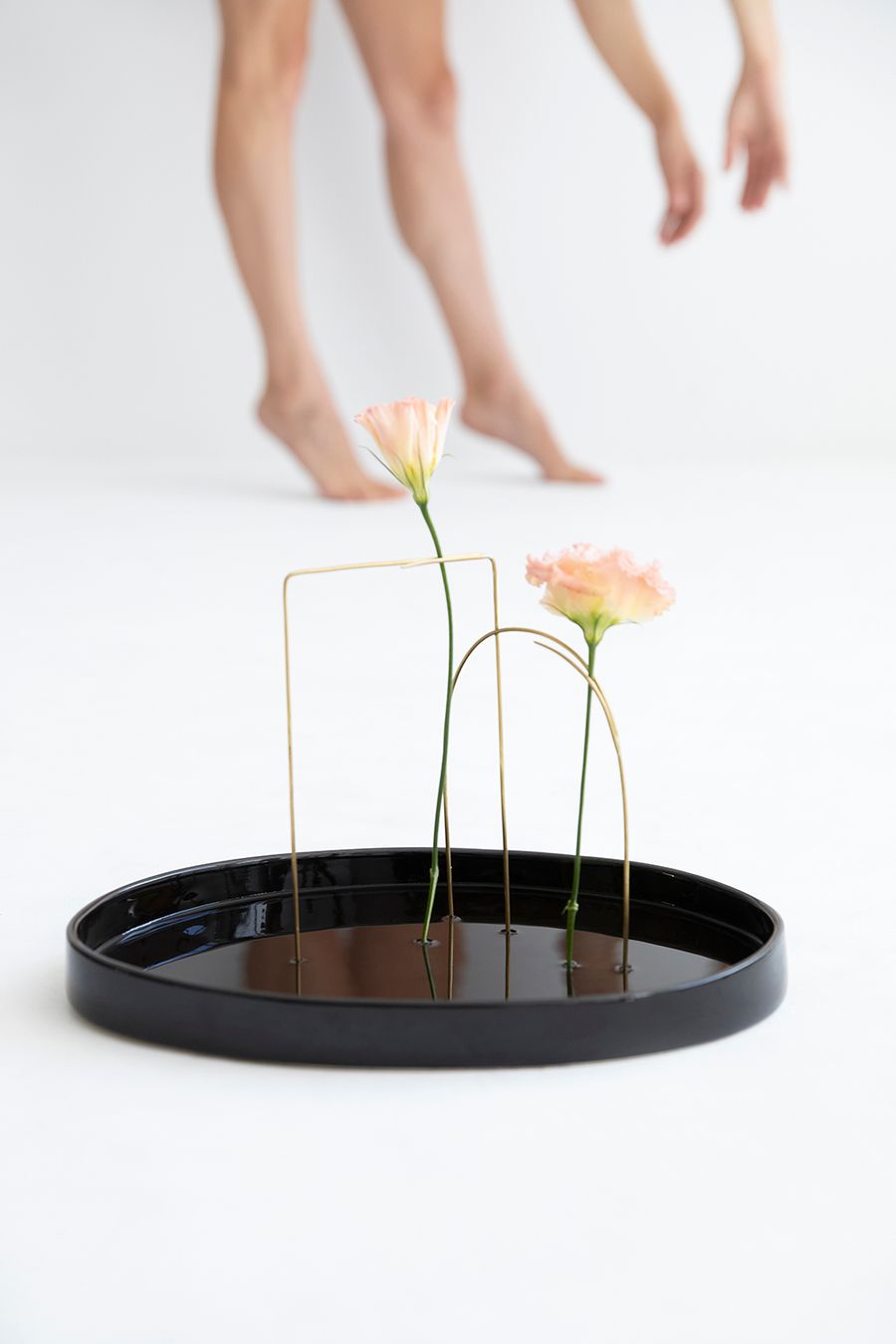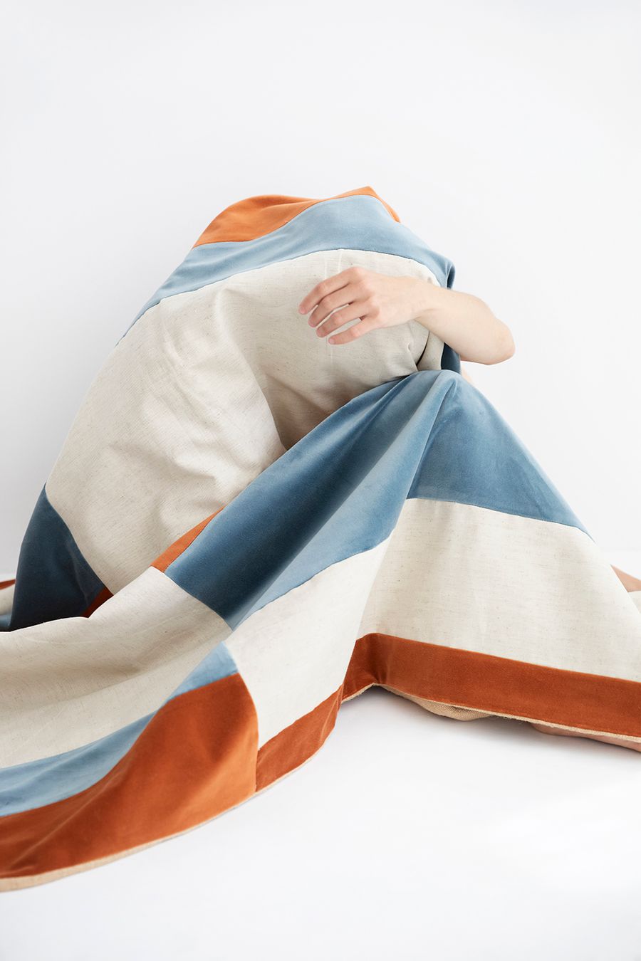 Curves of flat colour give shape to fully functional pockets on voluminous totes and smart wallets, reminiscent of physical extensions to painted artworks. Innovative ceramic flower holders with geometric silhouettes, cherish the Japanese philosophy of Ikebana. They highlight the flora’s natural beauty, embracing minimal aesthetic and functionality. A series of limited-edition rugs and throws stand as contemporary textile collages, combining opulent fabrics with modest ones, completing the brand’s leading line of products.