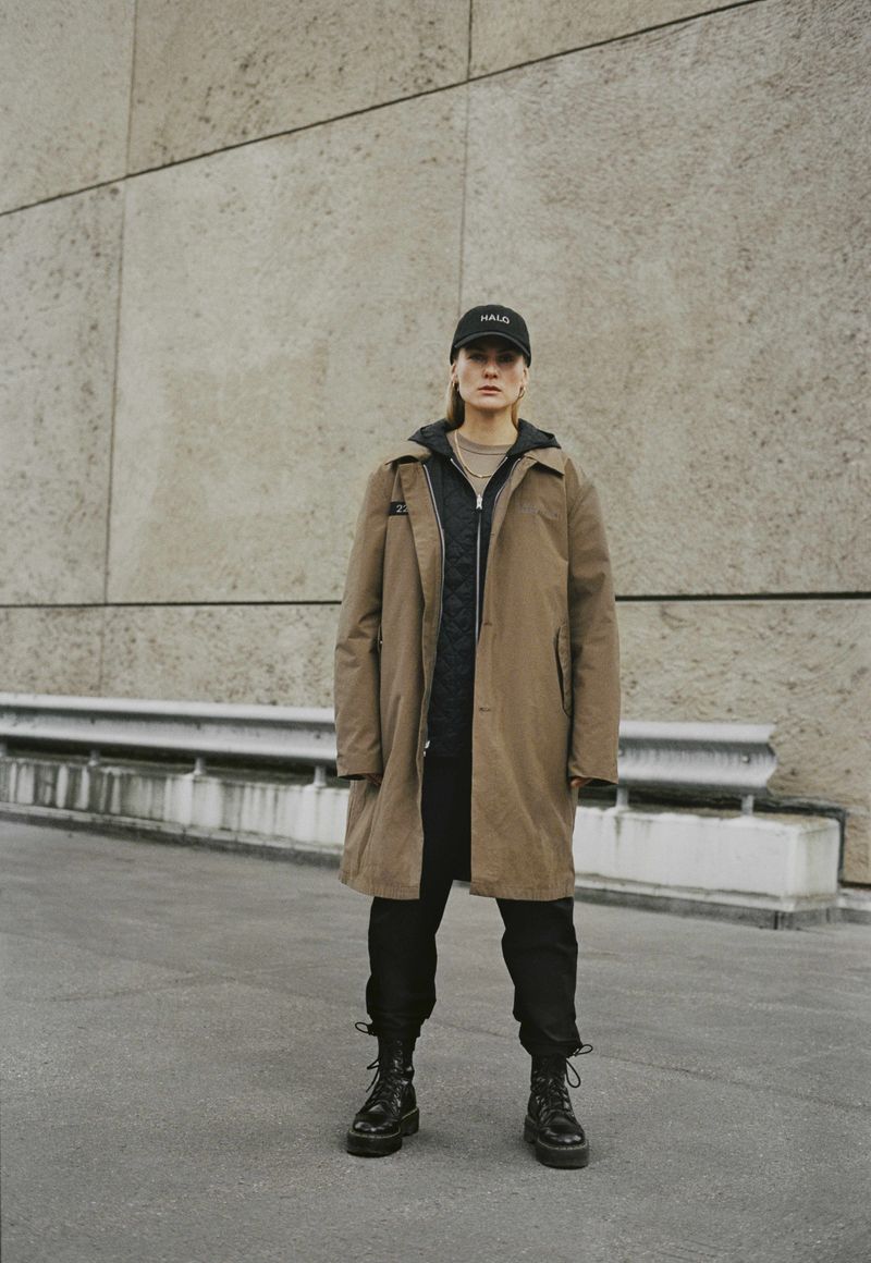 HALO’s latest collection includes a utilitarian line up of striking wardrobe staples intertwined with the brand’s signature military references. AW21 also explores an array of technical materials presented alongside off-duty silhouettes and minimalistic, contemporary cuts. HALO’s signature use of coding can be found throughout the collection, signifying both the inner and outer of layers of the collection.