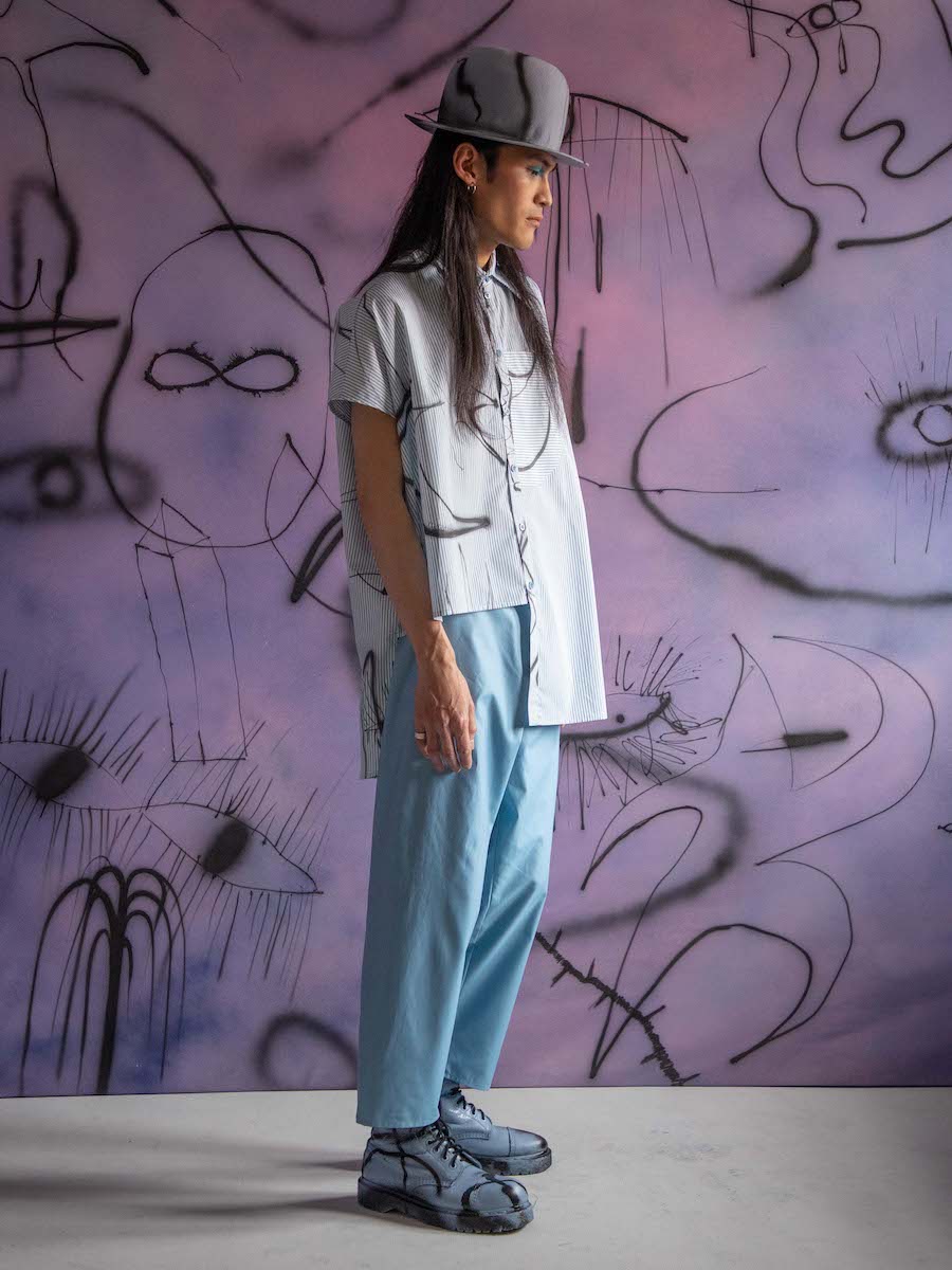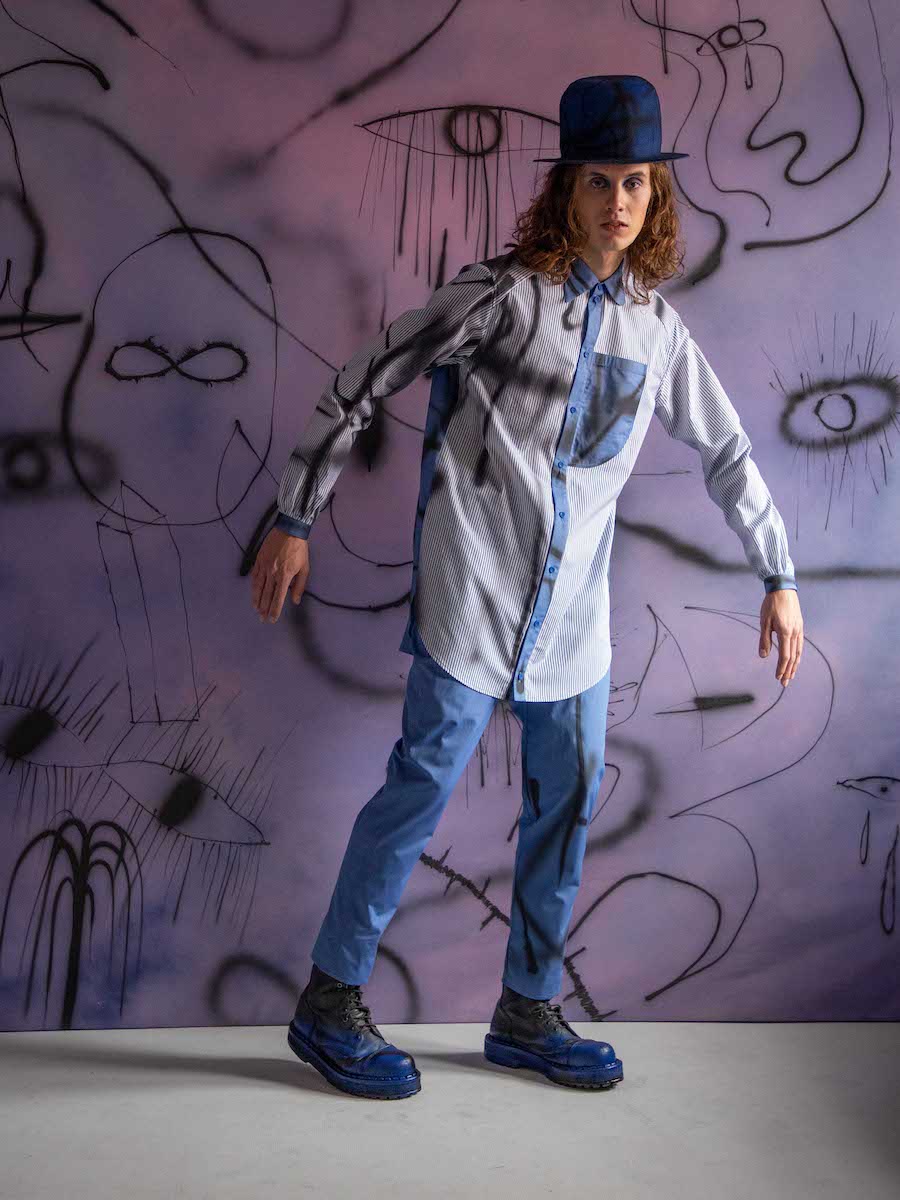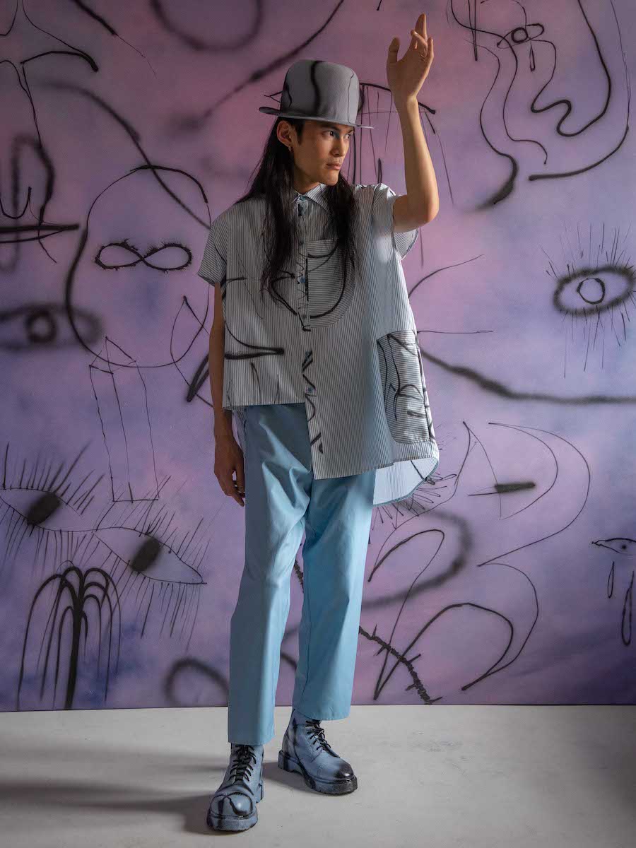 Hana’s organic response to Eva’s stories expressed by abstract illustrations is embodied by asymmetric shapes and sophisticated details. Each shirt or dress is a unique combination of shape, color, and print. The looks are intended to fit various body shapes. The collection DREAMERS was manufactured in Czechia, including fabrics, digital prints and custom buttons.