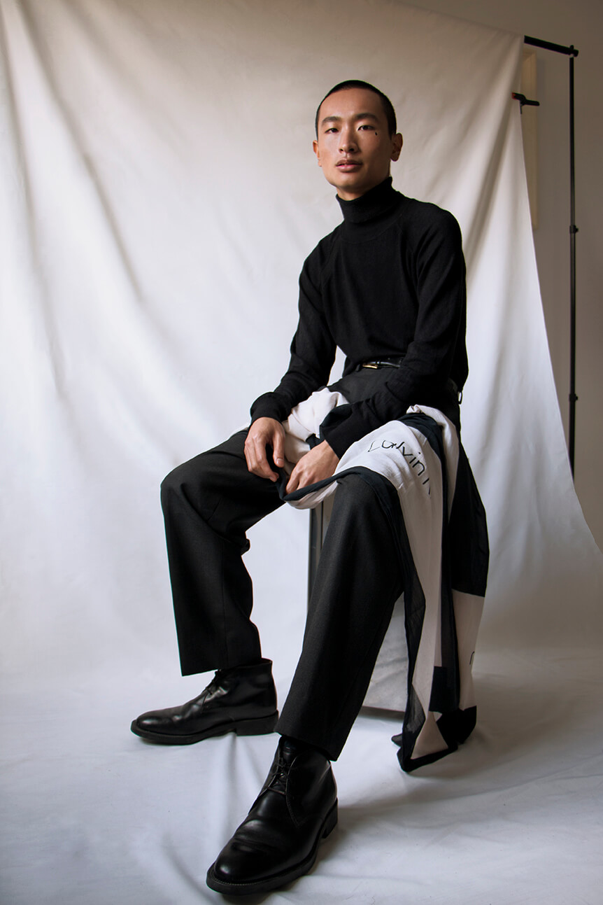 A KALTBLUT exclusive male model story. Photographer Marcos Parra captured Hao for us. Styled by Fernando Sempere. Make up by Almudena Traver. Brands are Dolce & Gabbana, Calvin Klein, Converse x J.W Anderson, MCM, Louis Vuitton, Ermenegildo Zegna, Loewe, Dior, Burberry, Trussardi, Jil Sanders, Tod´s, Marni, Lanvin.