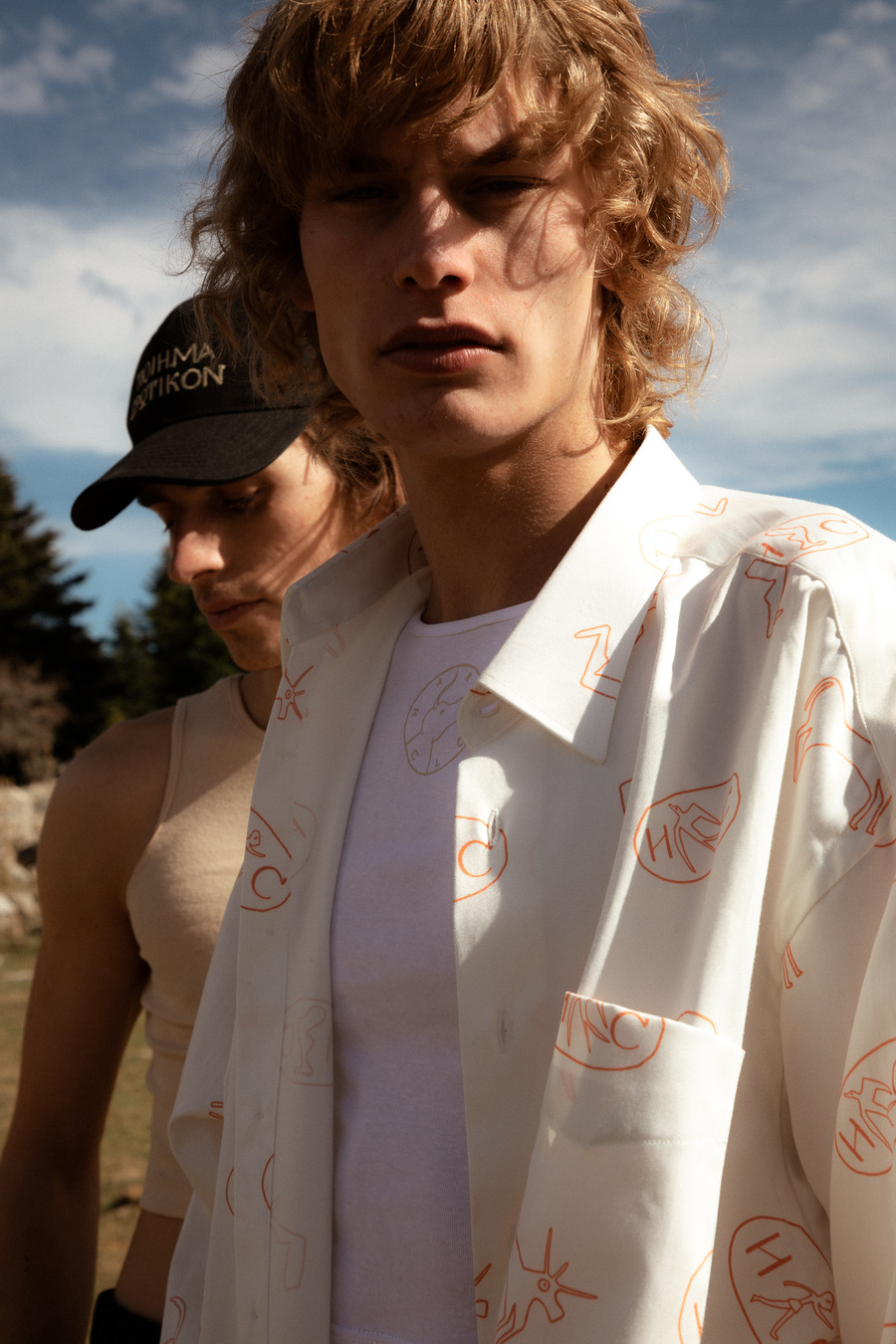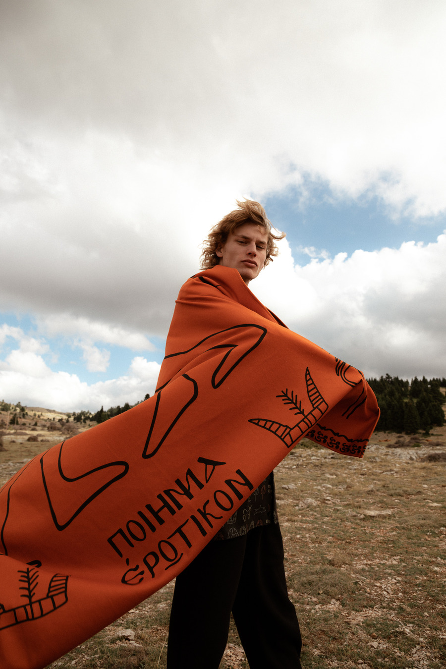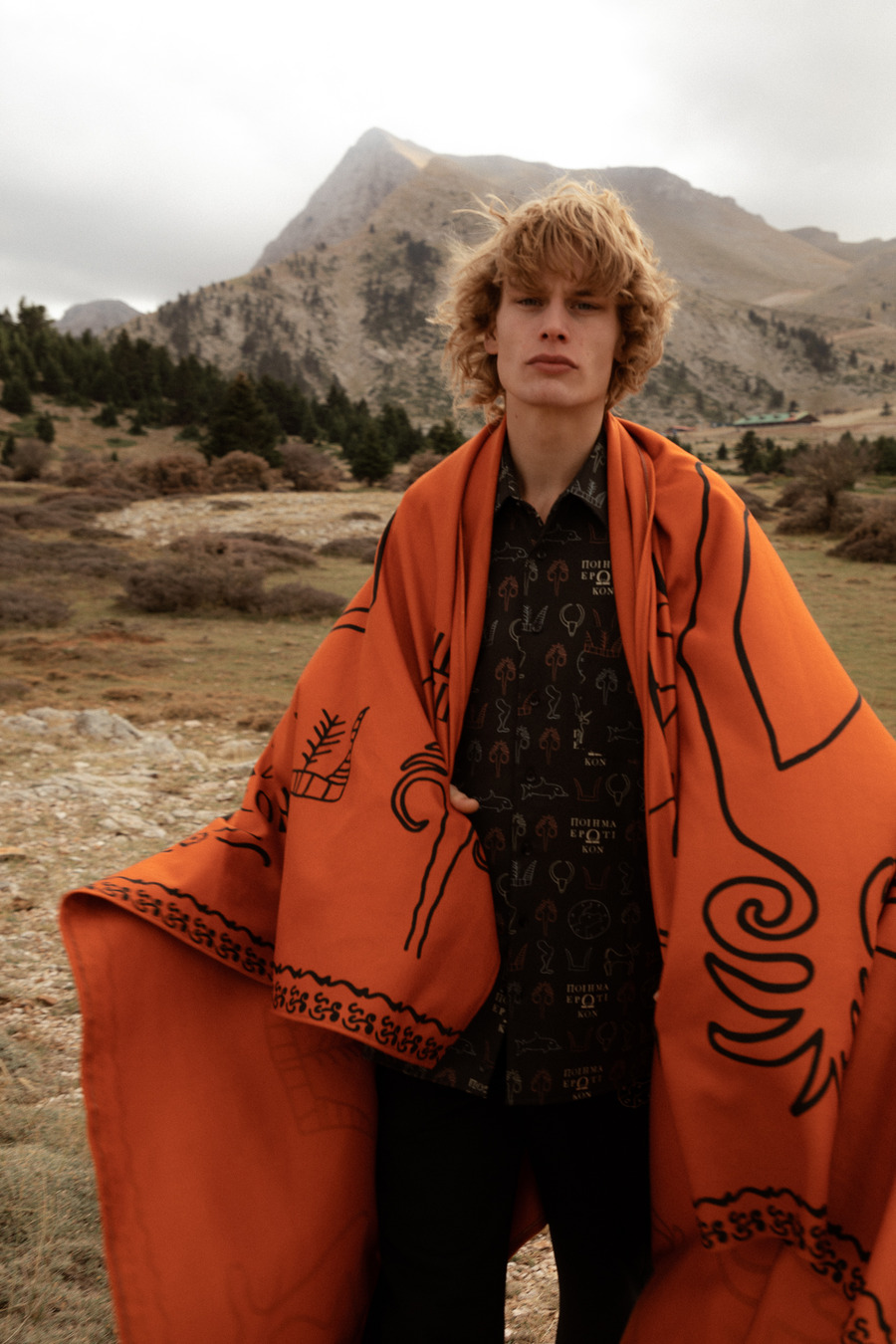Part of the collection are two shirts featuring illustrated patterns as well as a large blanket printed with graphics inspired by the characteristics of ancient Minoan Art.