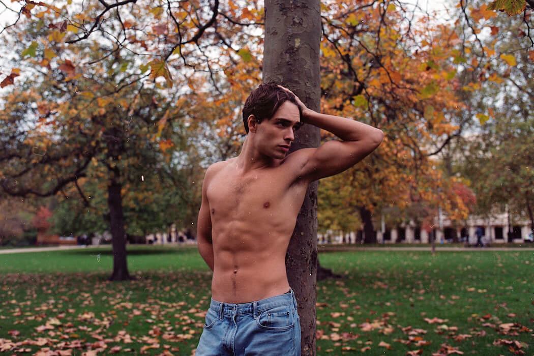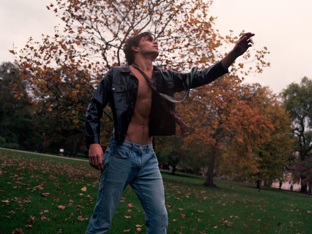 A KALTBLUT exclusive. Photography and Art Direction Enrico Vaccaro. Model is Freddie Johnson. “The streets are empty and the city doesn’t look the same anymore, although who would have thought that St. James Park could have become been a creative playground. Right in front of Buckingham Palace, it feels like we travel back in time, back to the 1980s when the city was different, it was less crowded and parks and nature were everywhere around you.” *Enrico Vaccaro
