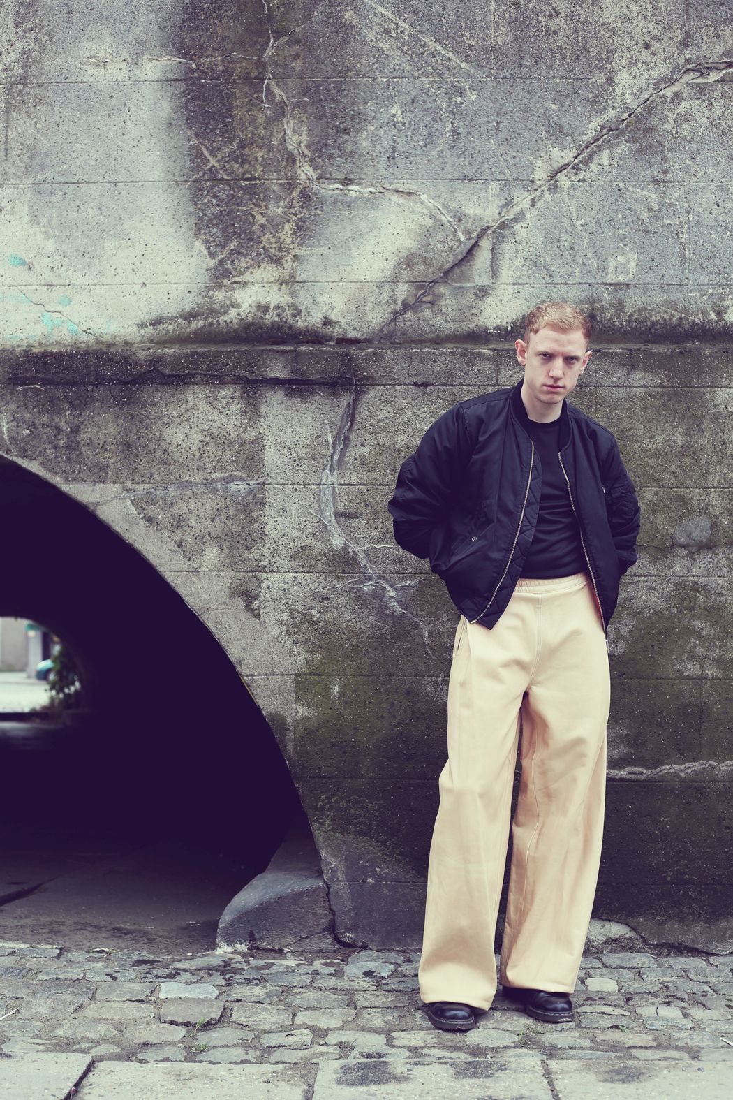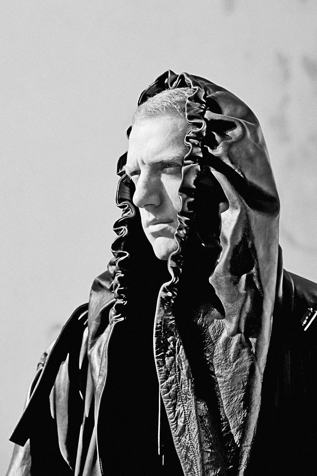 A KALTBLUT exclusive menswear editorial. Photography by Iwein De Keyzer, a Belgium based photographer whose work is a mix of spontaneous unconsidered snapshots and well-thought-out concepts. Styled by Lieze Rubbrecht. Model is Siemon Leon signed at The Agent. “For this photoshoot I worked with Lieze Rubbrecht, production manager at lingerie brand La Fille d’O, to create a serene yet strong atmosphere. I love working with her because she knows the best how to combine different materials and textures to create interesting and graphic looks.The model, Siemon, I spotted on instagram. First by his architectural photos, afterwards by his strong and unusual look. He reminds me of a young guy who grew up in the London suburbs, a shy kid but really into art.” says Iwein De Keyzer