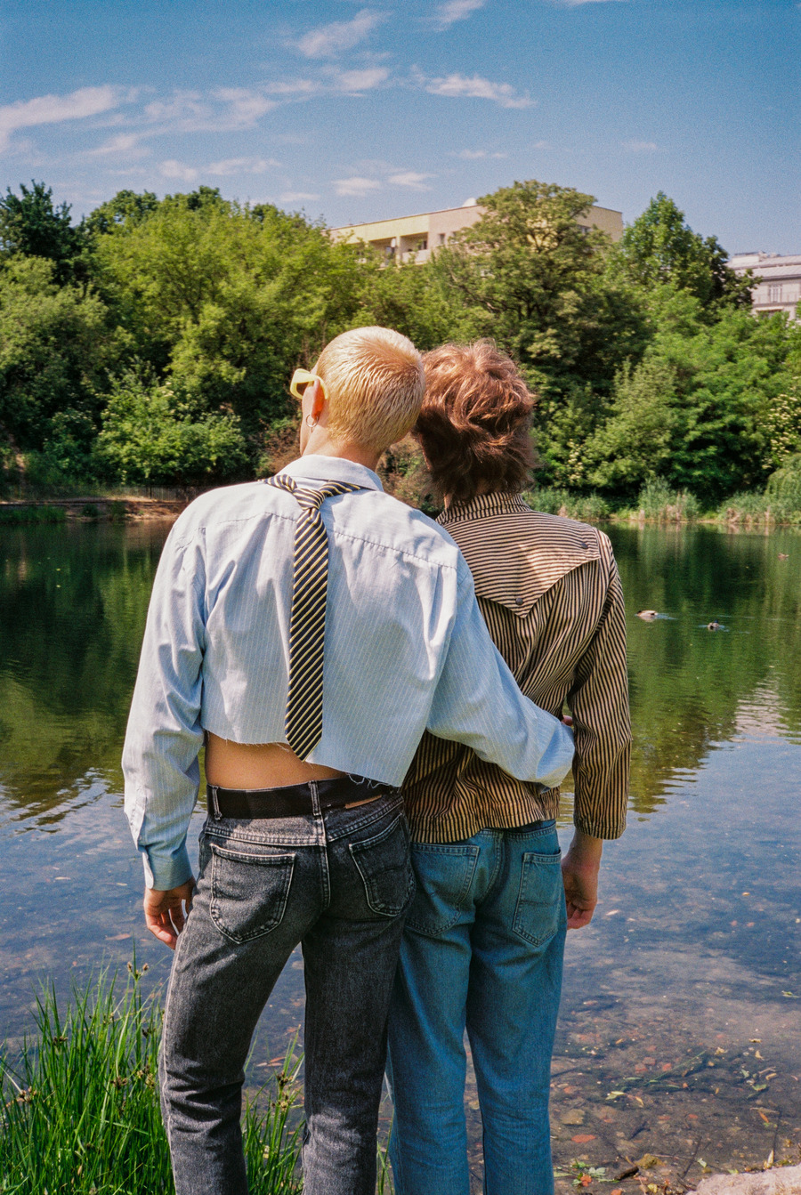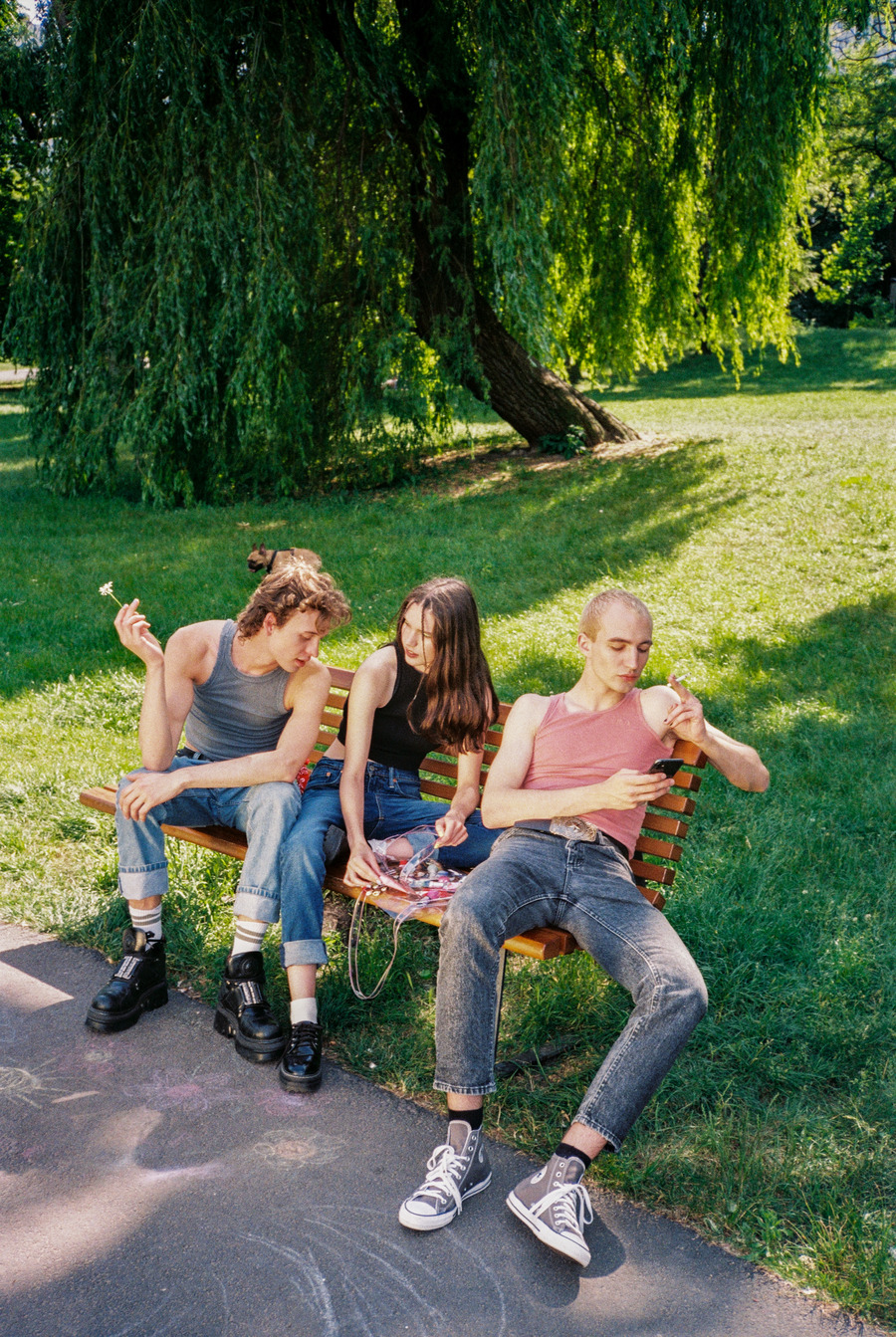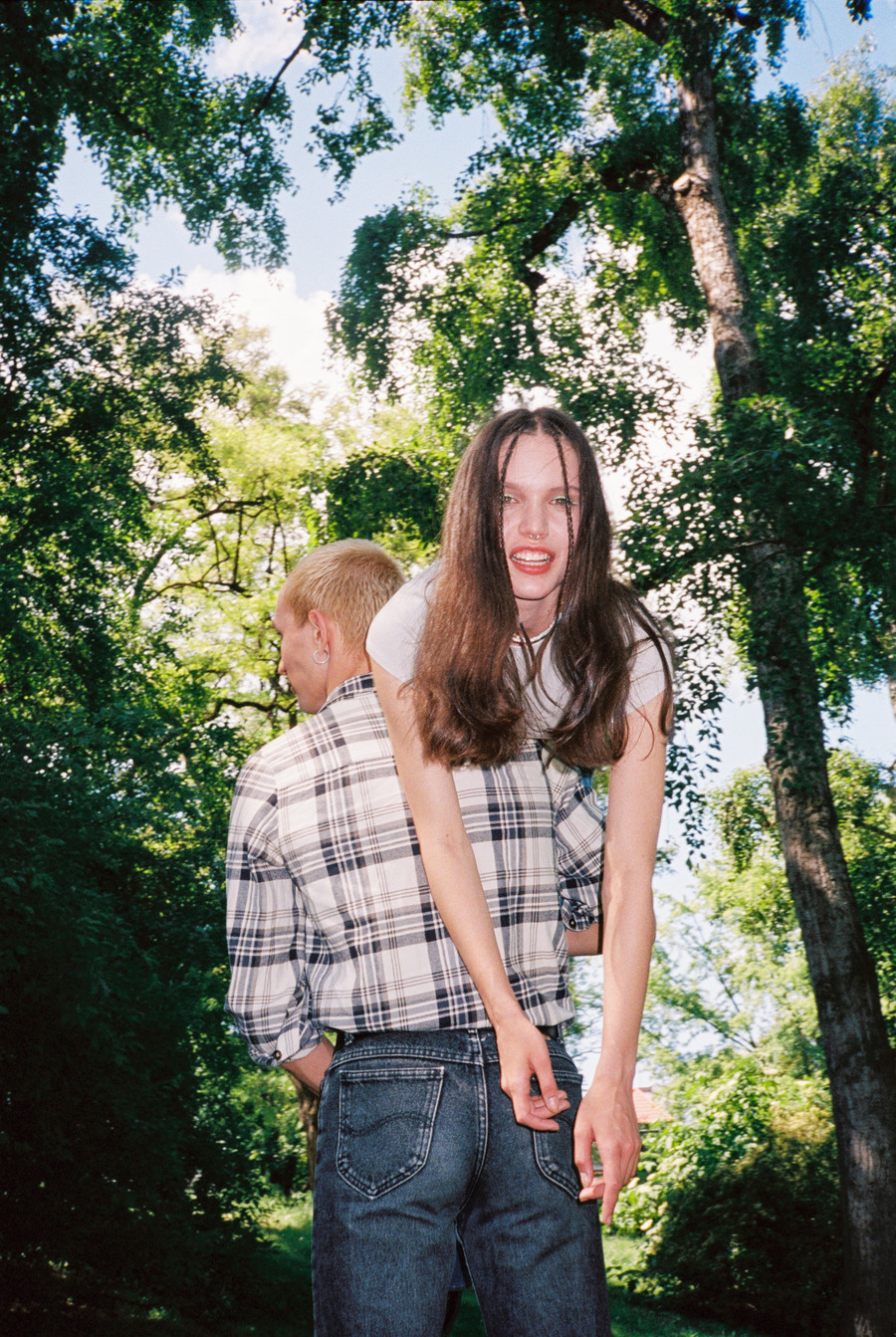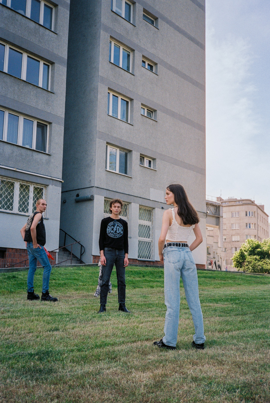 A KALTBLUT exclusive. Photography and art direction by Adrianna Grotkowska and Marcin Idziński. The models are Maria, Bartek and Artem. Scan and development by Filip Karpiński. Brands used are Asos Design, Zara, Wrangler, Lee, Dr Martens, Converse, H&M, YSL Vintage, Levi’s, Big Star, Calvin Klein, Reserved, and Stylist’s vintage garments.