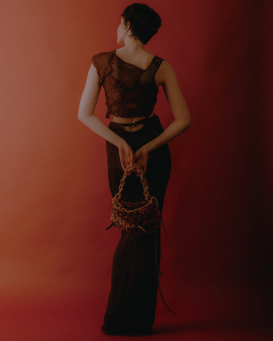 Introducing designer Nadia Maria Marino, who graduated from Central Saint Martins in 2022, is a German-Italian Designer specialising in Knitwear and Leather. Photography by Daniele Fummo. The model is Liv Packard. Art Direction by Edward James Lee. Styling by Paolo Zagoreo. Hair & Make up by Lou Box.
