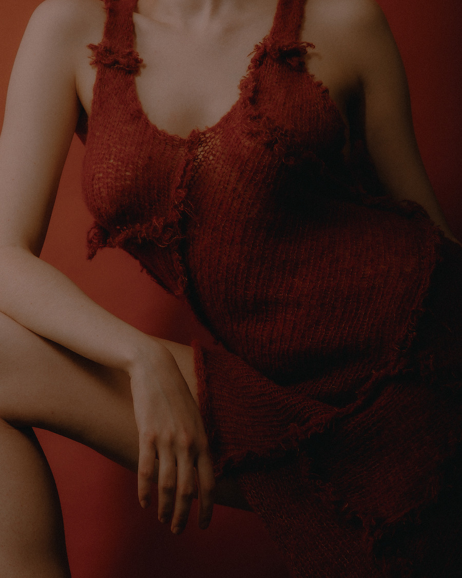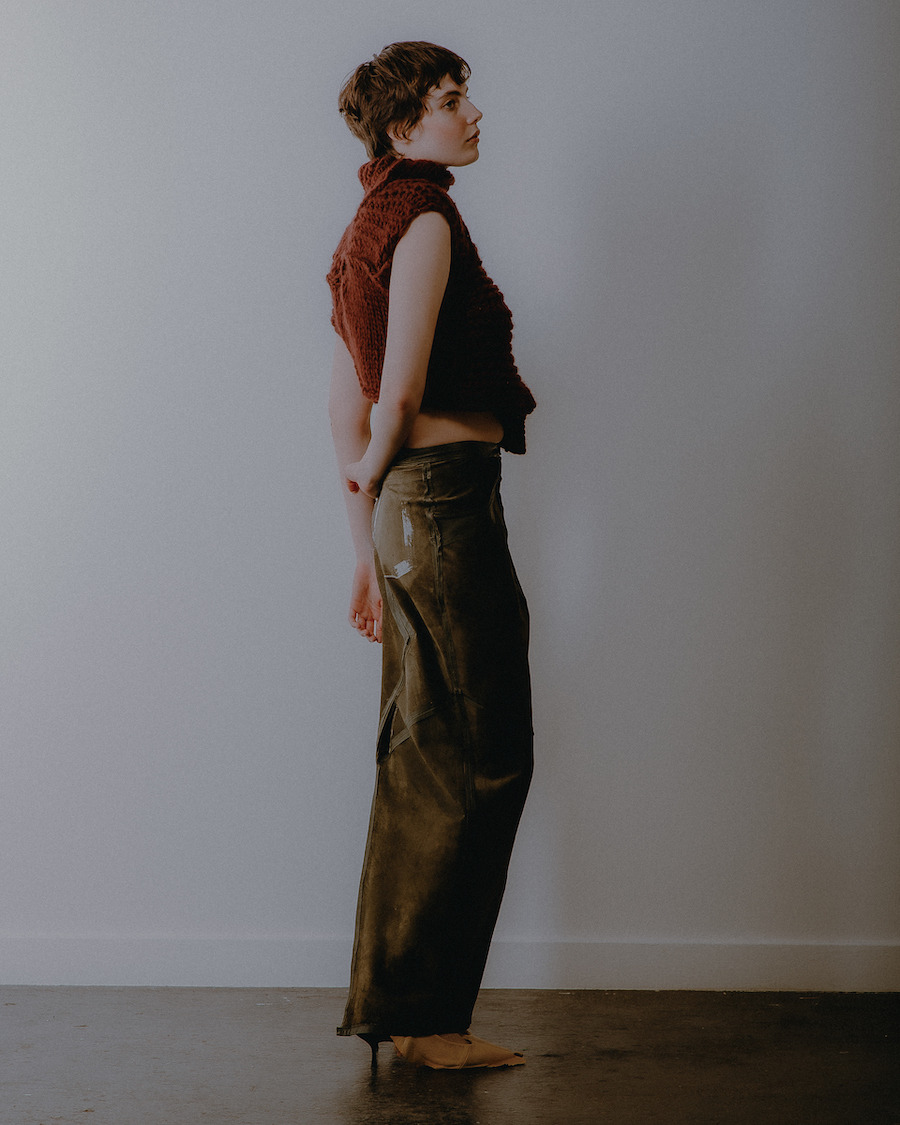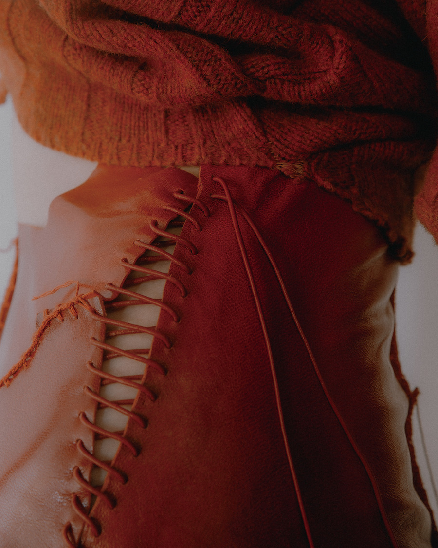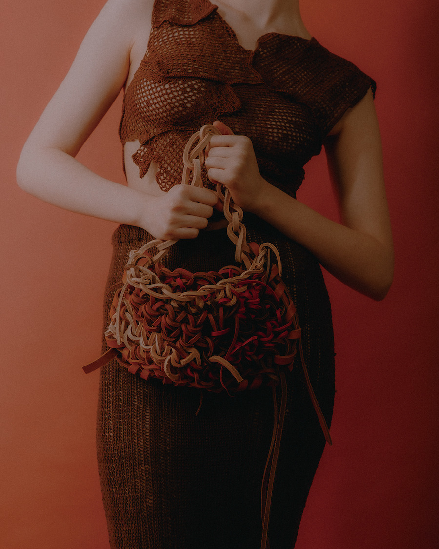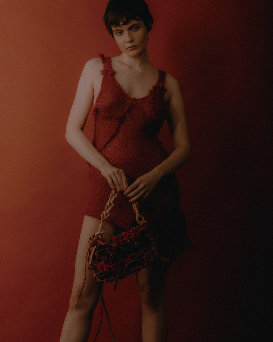Introducing designer Nadia Maria Marino, who graduated from Central Saint Martins in 2022, is a German-Italian Designer specialising in Knitwear and Leather. Photography by Daniele Fummo. The model is Liv Packard. Art Direction by Edward James Lee. Styling by Paolo Zagoreo. Hair & Make up by Lou Box.