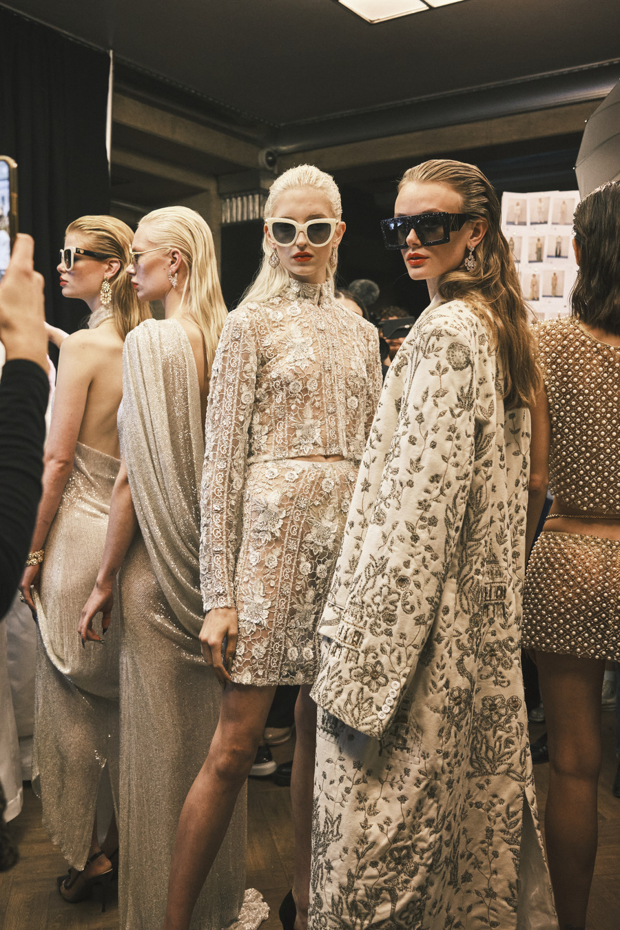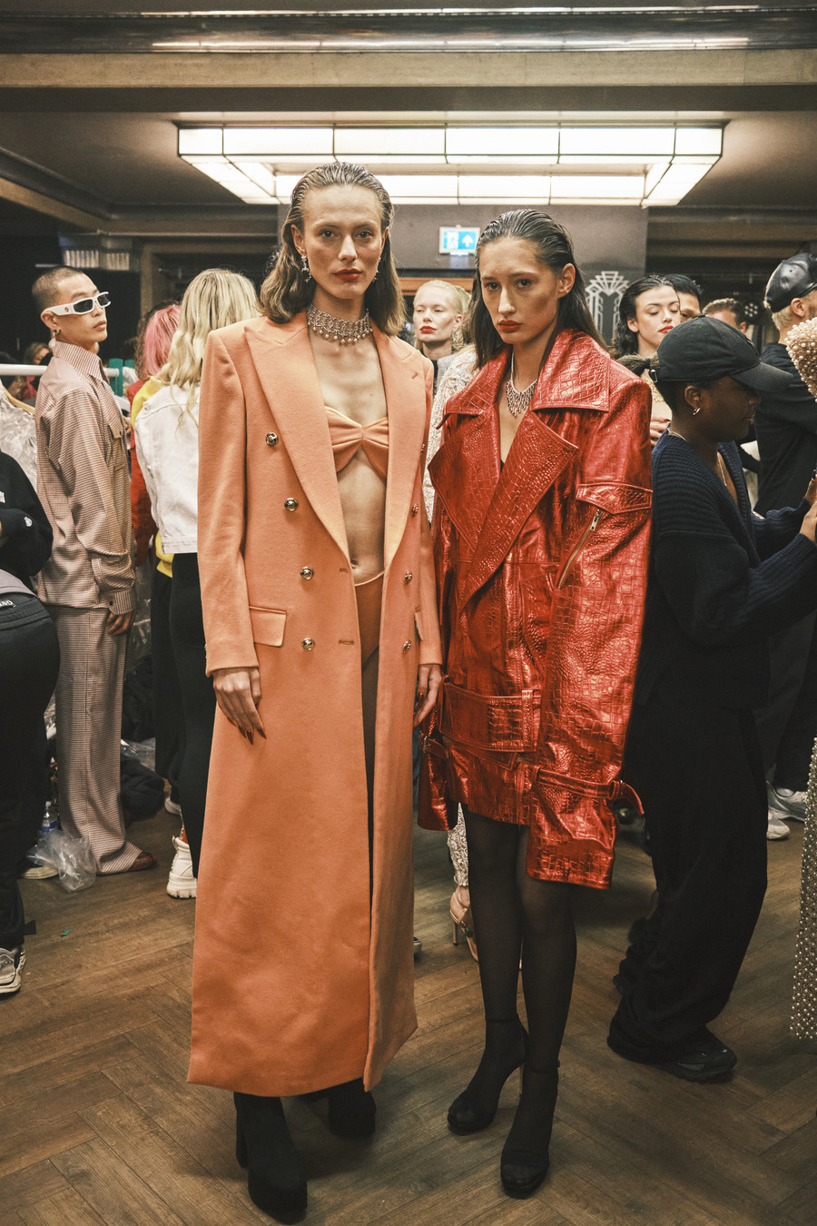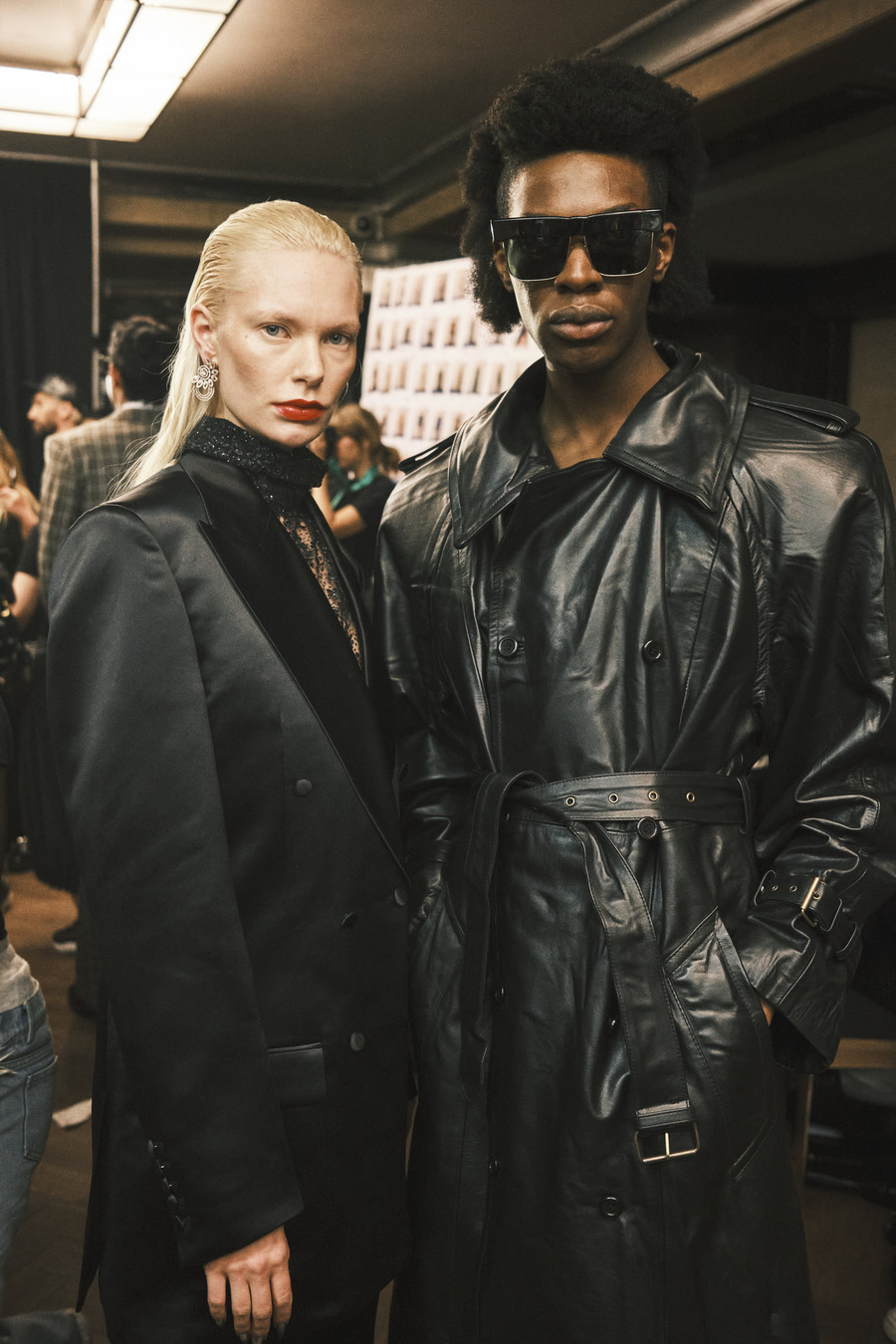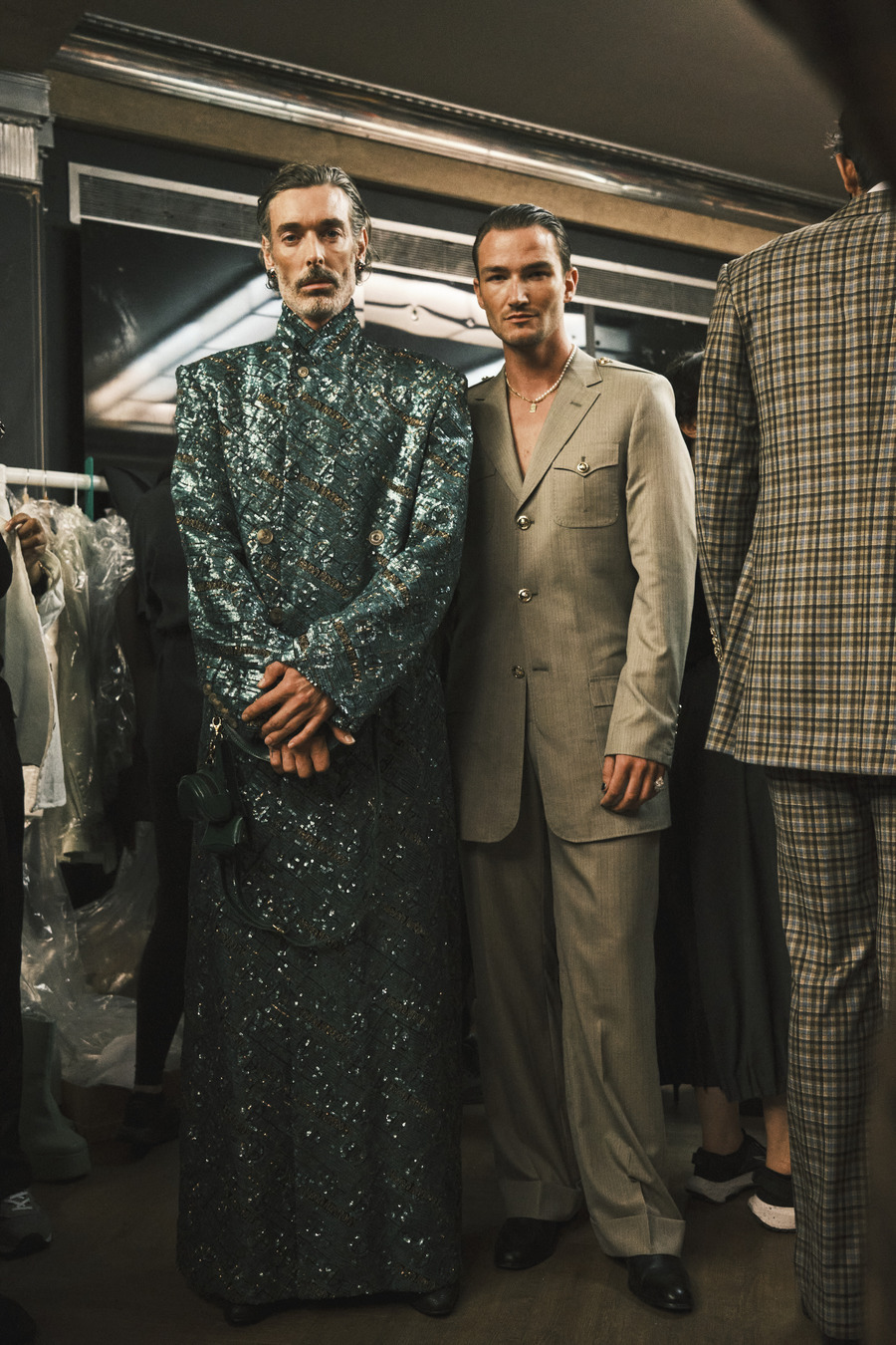 The collection also boasts impeccably well-structured and oversized floor-length overcoats and broad-shouldered blazers, reflecting yet again the re-occurring theme of empowerment, coinciding with flowing, low-cut maxi dresses with elegant tails alongside striking suits and powerful tuxedos. Playing with height and length, adding both high and low-waisted trousers and long and short skirts to add an element of playfulness to razor-sharp British tailoring. A collection that dares to be different, pushing boundaries and allowing the wearer to own any room, all whilst feeling strong and seen.