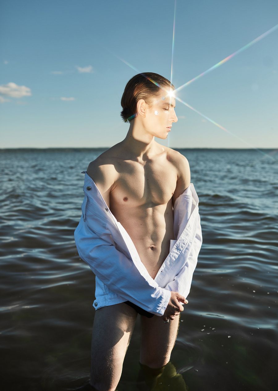 The born god of the sun illuminates the eyes with his warmth. Photography by Dima Cube. Model is Valera Melikhoff. Styling by Ekaterina Rikhter. Make up by Ekaterina Racheva. Hair by Kirill Naumov.