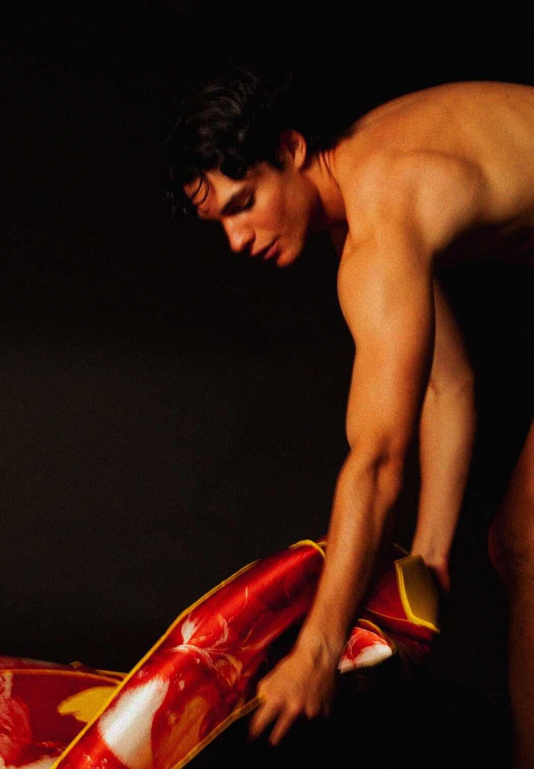 A KAKTBLUT exclusive editorial. Photography by Mirea Papotto. Models are Giovanni Profeti and Xuyongxin. Fashion by Francesco Malandrini. A sense of loss and feral melancholy is the main thread running through the collection. We sometimes experience sorrow almost by chance, without any clear reason or trigger: this fragile potential of ours tells a lot about our role as animals in this world.