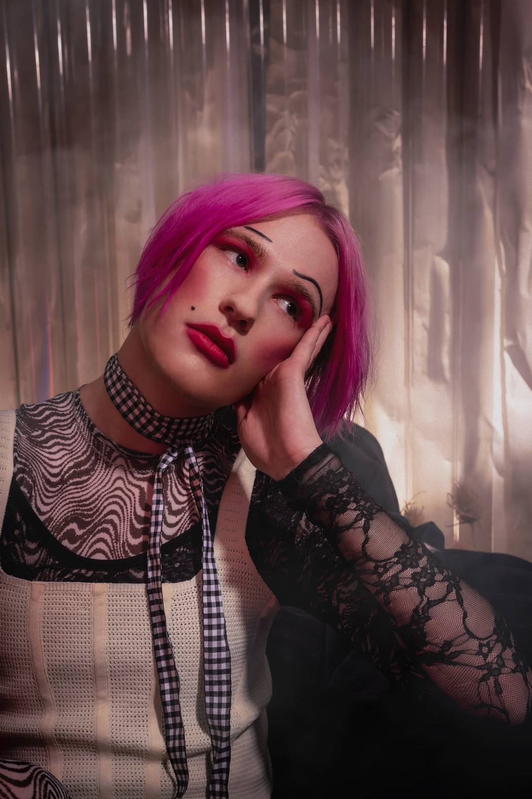 ‘Here I Dream’ is the first iteration of an ongoing project that aims to explore identity and self-presentation as a form of performance; featuring and collaborating with young creatives in Glasgow/Scotland, photographer Alexander Hoyles works to create constructed tableau-like scenes, in which the models’ own personal tastes and aesthetic identity are focused to create a sort of hyperreal avatar of themselves.
