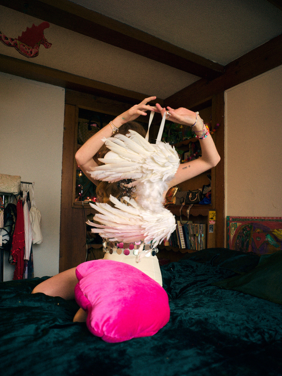 A KALTBLUT exclusive. Photography by Eric Thompson. The model is Grace Mcgrade with Margaux Agency Los Angeles. Styling by Mandy Mitchell. Hair by Tania Becker. Makeup by Miranda Richards. Fashion Brands used Adam Selman, GCDS, Re/Done, Paco Rabanne, Skims, Simon Miller, Gucci, and Chanel.