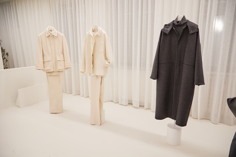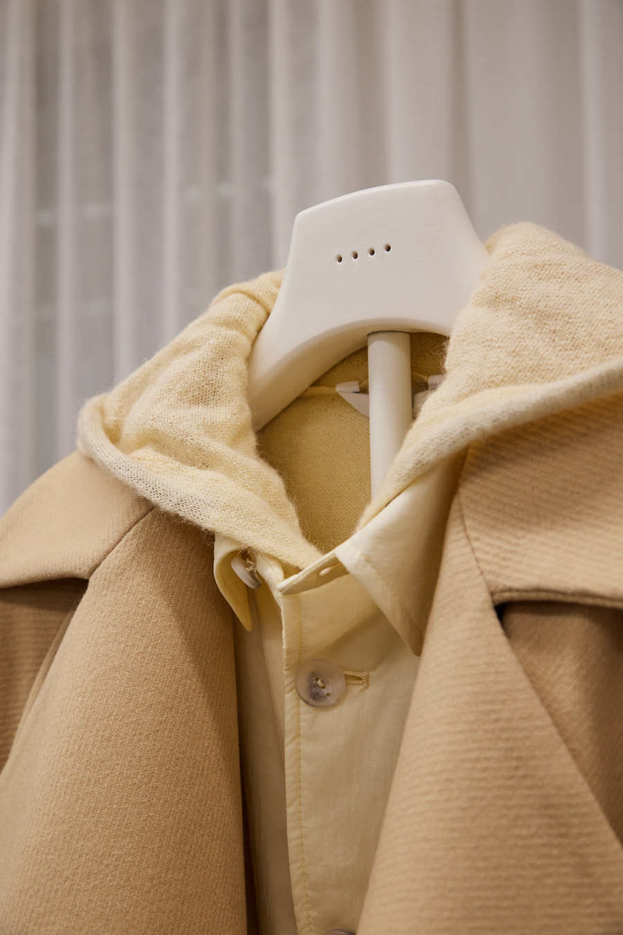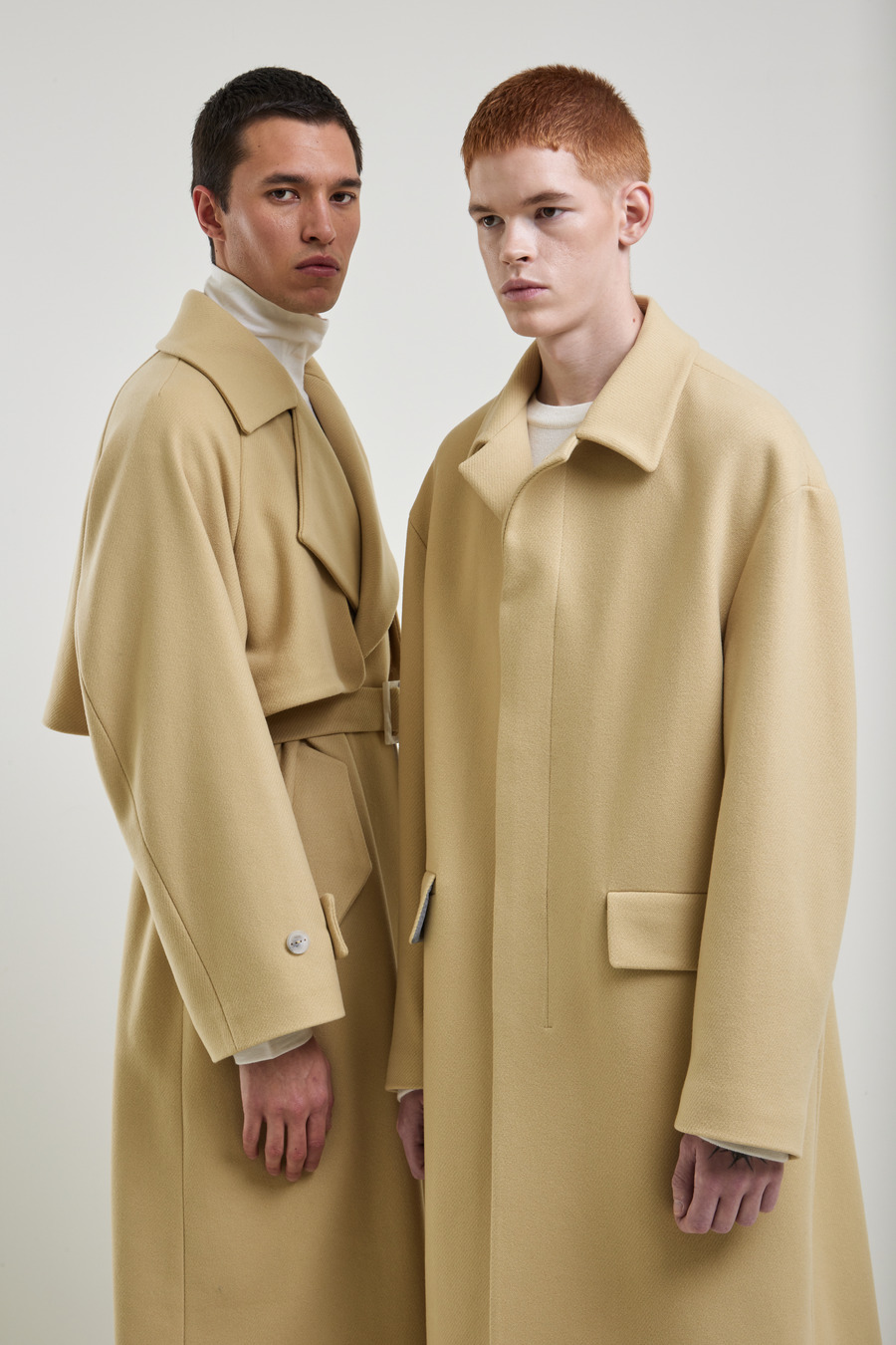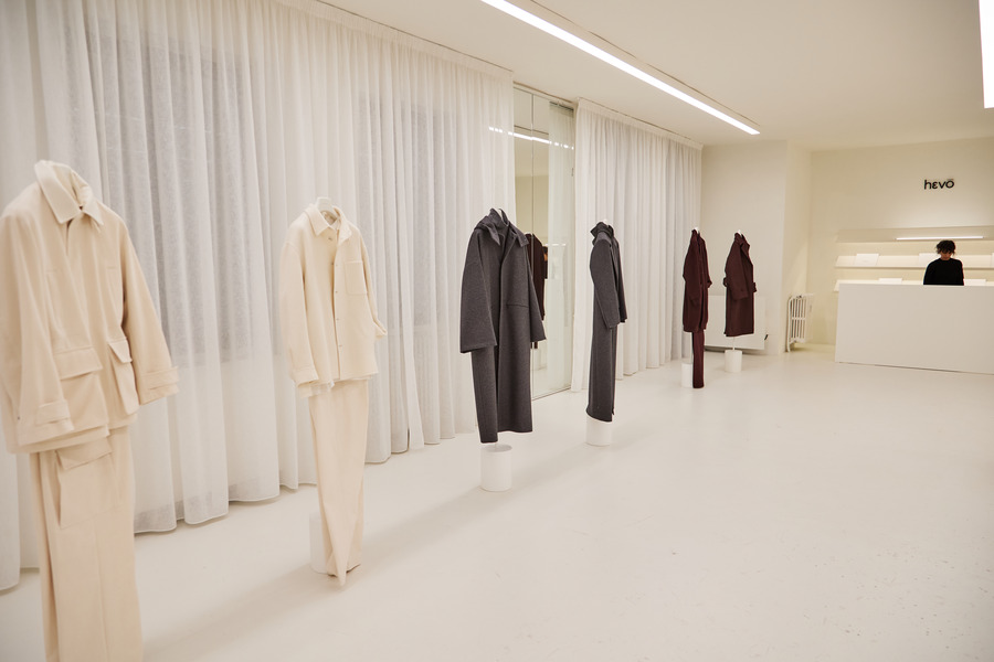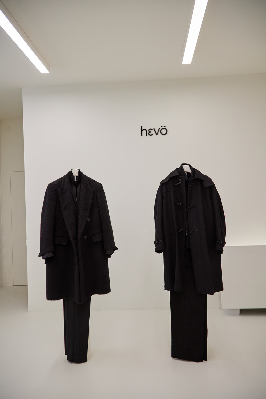 Hevò emphasizes thoughtful material selection, merging aesthetic appeal with practicality. The collection features pieces made from three distinct wool weights and padding to enhance versatility and comfort. The outerwear is designed to adapt to varying temperatures, including lightweight 100% wool knits, suitable for autumn, alongside heavier wool-cotton blends and ribbed knitwear for the coldest winter days.